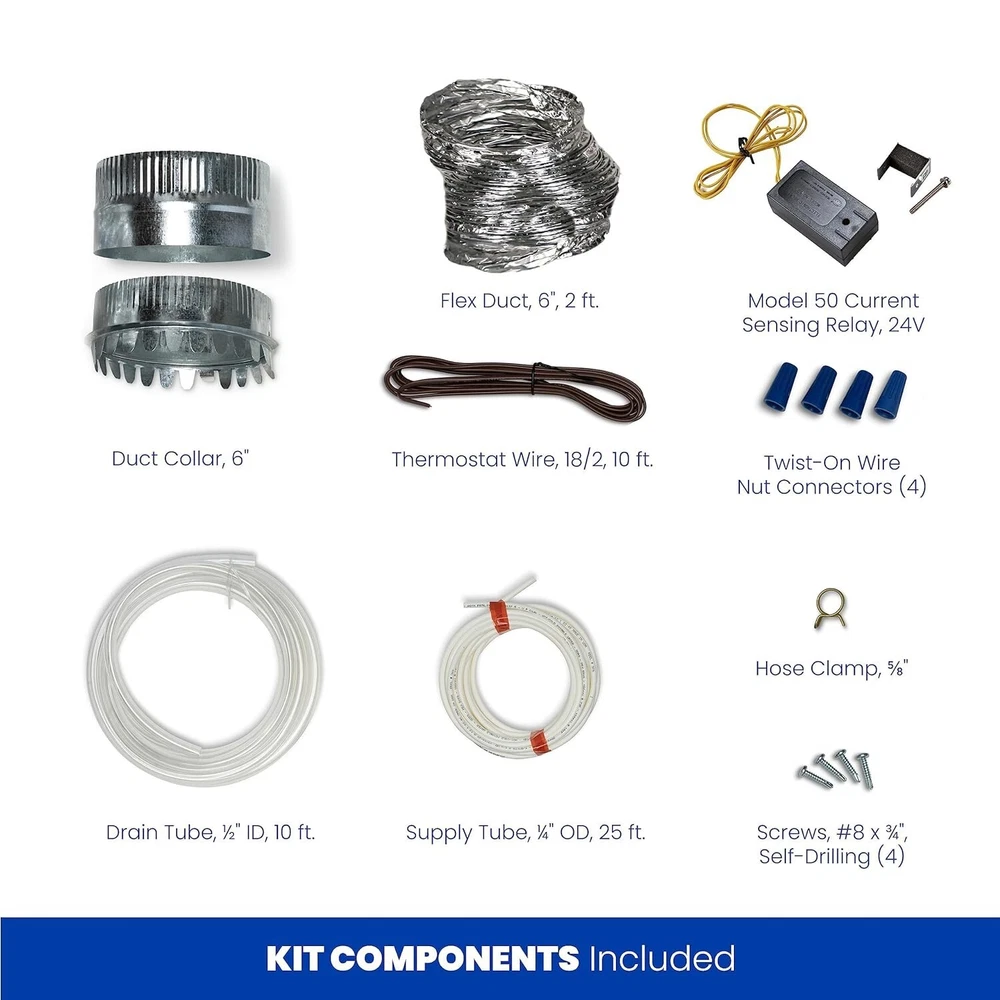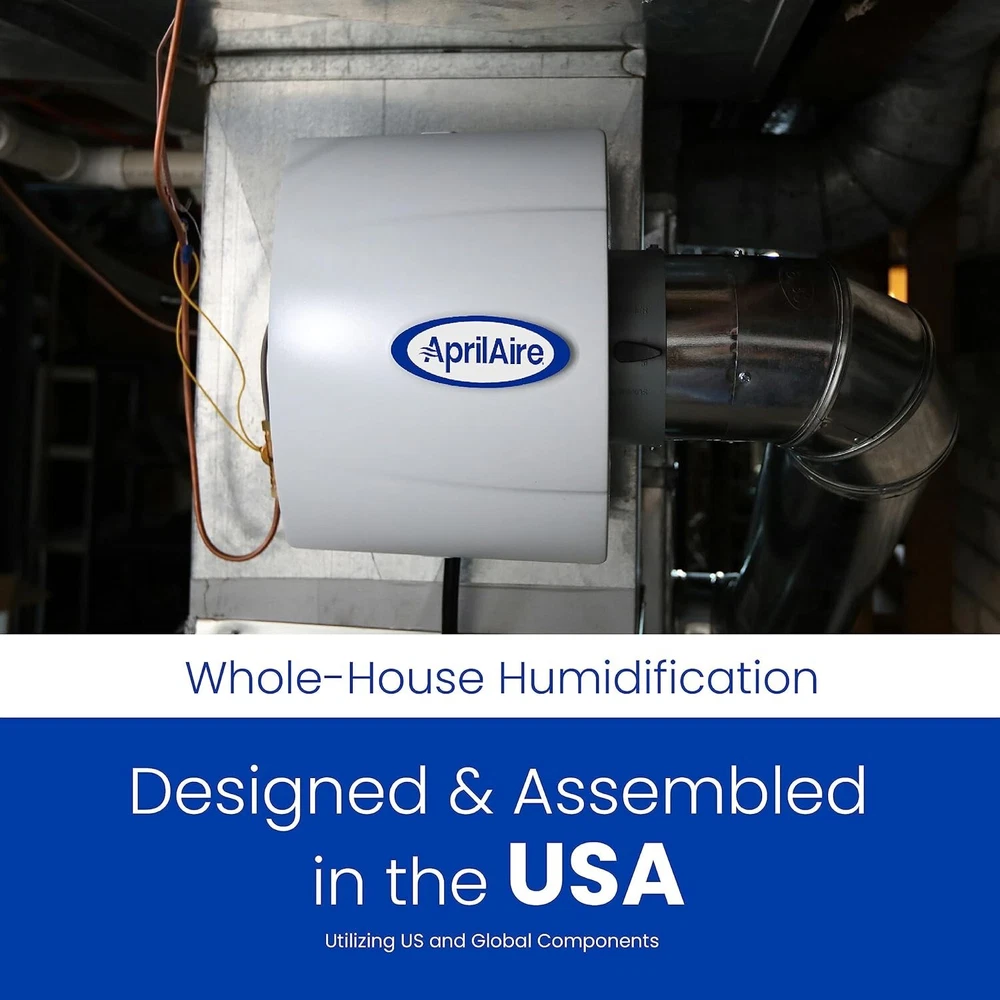 500M 12-gal. Whole-House Small Bypass Evaporative Humidifier with Manual Control for up to 3,600 sq. ft. + Model 5843 Humidifier Installation Kit BALANCED HUMIDITY FOR HEALTH AND HOME PRESERVATION – Help minimize the formation of bacteria, viruses, fungi, and dust mites that thrive in low humidity and help preserve wood floors, cabinetry, furnishings, and other items susceptible to dry air WHOLE-HOUSE HUMIDIFICATION – Deliver 12 gallons of moisture per day in homes up to 3,600 sq. ft. with trouble-free performance and minimal maintenance. The water panel removes impurities before adding moisture to the air. Use genuine 10 Water Panel for annual MANUAL CONTROL – The included Model 4655 Manual Humidistat monitors your home's air providing precise control and the onboard sensor actively measures the relative humidity throughout your home and turns on the humidifier when needed giving you peace of mind INSTALLATION KIT – No need to find the parts yourself. This convenient bundle comes with all of the genuine parts needed for installations in homes with ducted heating systems plus detailed installation instructions BUY WITH CONFIDENCE – Whole-House Humidifiers are designed and assembled in the USA using US and global components by , the leader in Indoor Air Quality solutions for the home since 1954, and come with a 5- satisfaction INCLUDES – 500M Whole-House Humidifier, Model 4655 Manual Humidistat, (1) genuine 10 Water Panel, (4) #8 x 3/4 Mounting Screws, 6" Round Duct Collar, 6" Bypass Flex Duct (2 ft.), ¼" outside diameter (OD) Water Supply Tube (25 ft.), ½" interior diameter (ID) Drain Tube (10 ft.), ⅝" Hose Clamp, Current Sensing Relay Model 50, 18/2 Thermostat Wire (10 ft.), and (4) Twist-On Wire Nut Connectors The 500M Whole-House Humidifier is designed for homes up to 3,600 sq. ft. The included manual humidistat lets you control the humidity level throughout your home. While balanced humidity exists between 40–60%, it's important to remember that outdoor temperature and other home factors will impact what relative humidity level is attainable and recommended for your house. You’ll enjoy balanced humidity thanks to the evaporative process, which works by passing hot, dry air from your furnace over the interior water panel to add moisture before returning the humidified air into your home using the existing blower fan in your HVAC system. The water panel is essential to the process, ensuring the removal of impurities from the water and providing uniform, high evaporation for whole-house humidification. invented the whole-house evaporative humidifier in 1954, and this unit is designed and assembled in the USA utilizing US and global components. It offers multiple options for installation, making it simple to experience the benefits of balanced humidity throughout your living space.