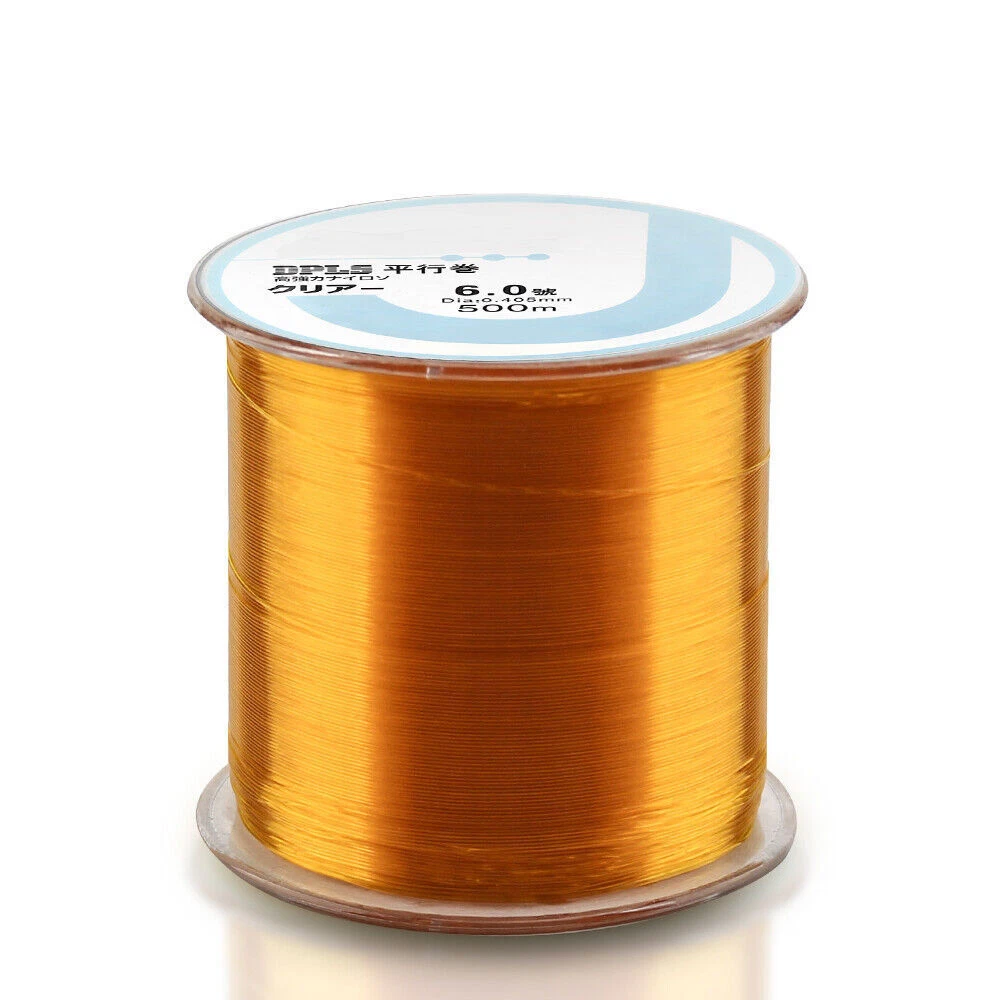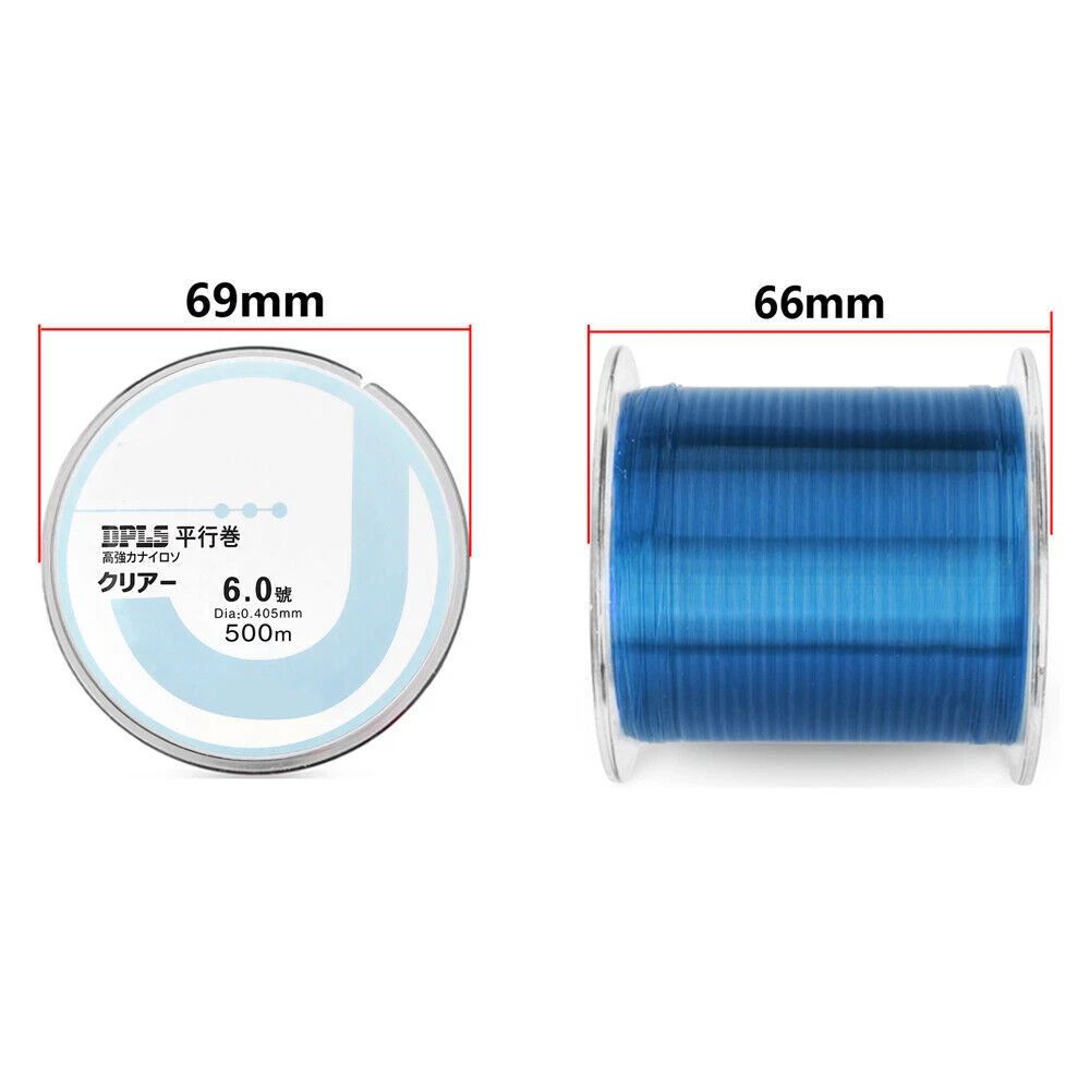 DNDYUJU 500M Nylon Fishing Line Monofilament Material From Japan Multiple Colour Lake River Carp Line Saltwater Fishing 500M fishing line test table Line Number 0.4#: 0.104mm / 2LB / 0.9KG Line Number 0.6#: 0.128mm / 4LB / 1.8KG Line Number 0.8#: 0.148mm / 5LB / 2.2KG Line Number 1.0#: 0.165mm / 6LB / 2.7KG Line Number 1.2#: 0.180mm / 6.5LB / 2.9KG Line Number 1.5#: 0.205mm / 7LB / 3.1KG Line Number 2.0#: 0.235mm / 8LB / 3.6KG Line Number 2.5#: 0.260mm / 10LB / 4.5KG Line Number 3.0#: 0.285mm / 12LB / 5.4KG Line Number 3.5#: 0.300mm / 14LB / 6.3KG Line Number 4.0#: 0.330mm / 16LB / 7.2KG Line Number 5.0#: 0.370mm / 20LB / 9.0KG Line Number 6.0#: 0.405mm / 25LB / 11.3KG Line Number 7.0#: 0.435mm / 30LB / 13.6KG Line Number 8.0#: 0.470mm / 35LB / 15.8KG Line Number 9.0#: 0.50mm / 37LB / 16.8KG Line Number 10.0#: 0.55mm / 40LB / 18.1KG Line Number 12.0#: 0.60mm / 45LB / 20.5KG Features: 1.Smooth design increase casting distance and overall fishability. 2.Best Material From Janpan is good for sea carp.etc fishing 3.Braided by the machine from German make the line more rand than others and ensure casting longer. 4.Bulkly knots eliminated, gives incredible contact with your catch. 5.Nearly zero water absorption, is best fro saltwater, blue lake fishing. 6.No unpleasant odor on Poseidon line, is healthy. 500M Fishing Line Capacity Details: The fishing line has a small diameter. Less capacity on a transparent plate. The fishing line has a large diameter. There is much capacity on a transparent plate.