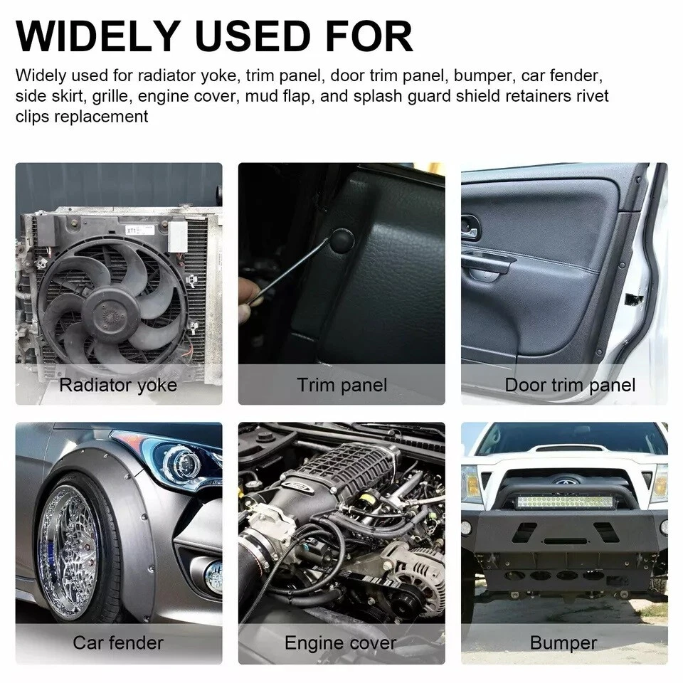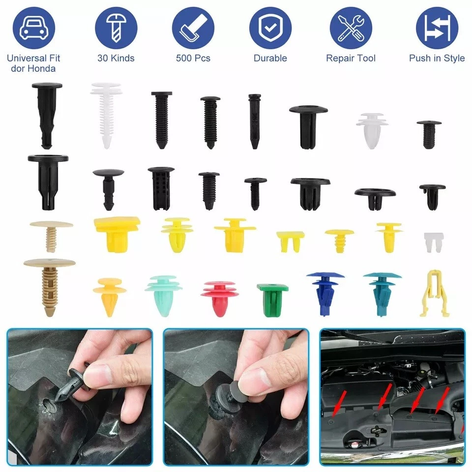 500PCS Car Retainer Clips Auto Fastener Car Body Push Trim Pin Rivet Bumper Kits Features: These rivet fasteners are made of nylon material, suitable for car use. Car's good accessory, commonly used for fitting side skirts, bumpers and other trim. These clips are suitable for firmly holding anything within a fit diameter hole. They can be used on buses, trains, planes, truck, caravans and cars. Type: Fastener Clip Color: Black Material: Plastic Quantity: 500 Pcs Notes: Due to the light and screen setting difference, the item's color may be slightly different from the pictures. Please allow slight dimension difference due to different manual measurement. Package Includes: 500 x Fastener Clips Welcome to our Store ! ! Converse: 1 inch = 2.54cm or 1cm = 0.393 inch Note: Due to the light and screen difference, the item's color may be slightly different from the pictures. Please understand. Make sure you don't mind before you bid. Please allow 2-3cm differences due to manual measurement.