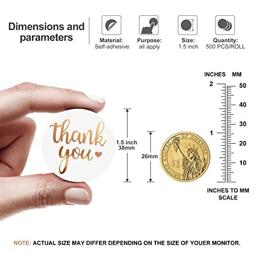 Return Policy Fast Delivery Trusted seller 1.5 Inch Thank You Stickers, 500 PCS Sealing Stickers Thank You Label Tags for Boutiques,Giveaways,Envelope Seals, Small Business,Wedding,Birthday,Party Gift Wrap Bag,Baking Packaging Product Description 【Thank You Stickers】The stickers pattern is composed of white and rose gold, feature a shiny metallic finish,feeling smooth,expressing sincere thanks to customers, friends and family. 【Excellent Quality】Our thank you stickers are easy to peel or stick, it won't fall off easily with high quality adhesive. simple and easy to use, add personal style to your products.Increase customer love. 【Wide Range Of Applications】These stickers are suitable for flower bouquets, parcels, candy bags, glass jars,cookie,gift wraps,wedding favor bags or business packaging. 【Sufficient Quantity】The quantity is enough! The size is 1 inch, and t are 500 stickers in a roll, which can satisfy users. 【Thanks For Your Support】Thank you for your support for our thank you stickers. If you have any question, please contact us. We will help you any time. Your satisfaction is our only . Shipping Returns Payment Shipping Shipping is FREE to all addresses other than APO/PO boxes in the lower 48 states. All our stock ships from US-based warehouses. Shipped via USPS or UPS (depending on location and package weight) Unless stated otherwise, all orders will ship within 24-72 hours of your payment being processed. Check our feedback to see the great reviews of FAST shipping we offer. Returns Seller does not accept returns Payment We currently accept payment via eBay managed payments only. Once payment is cleared, we will dispatch your shipment within 1-3 business days. Please refer to the "Shipping" tab for more information regarding shipping speed to your destination.