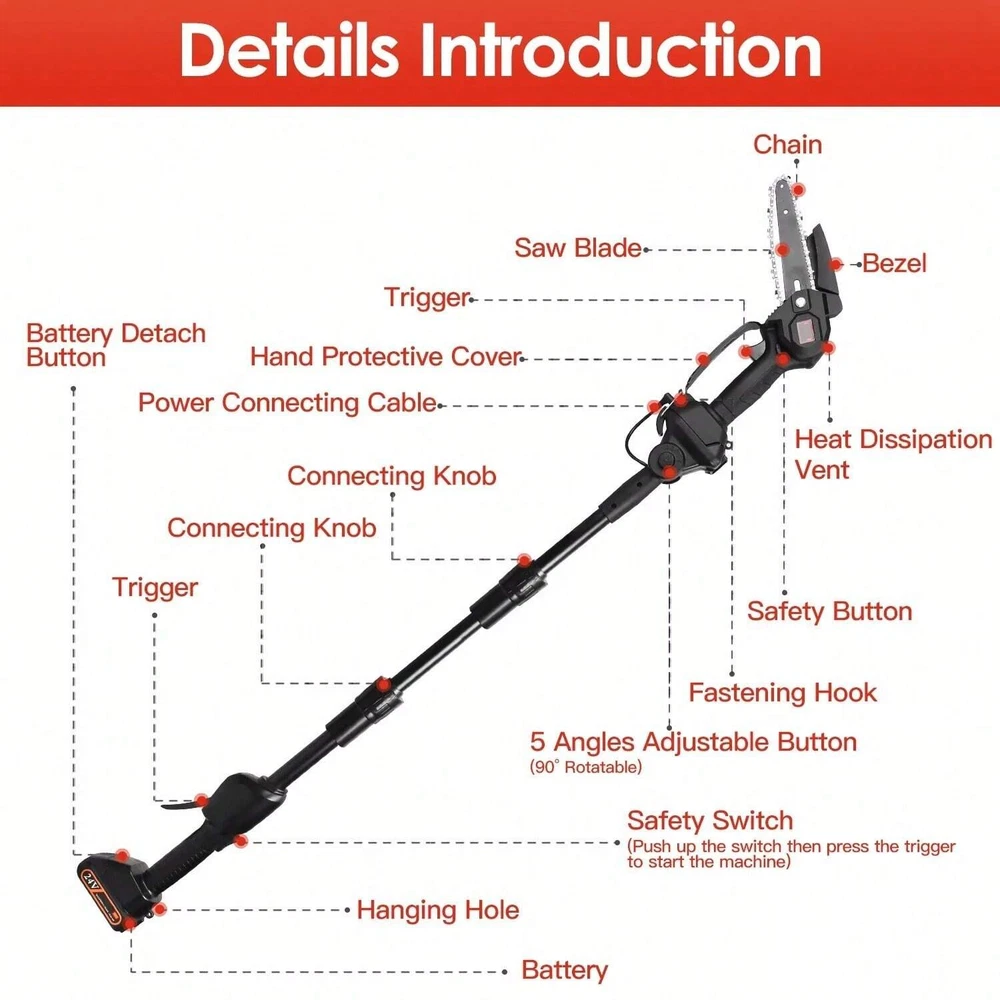 2-In-1 Mini Electric Chainsaw & Cordless Pole Saw Chain Saw 500W Battery Power Tools