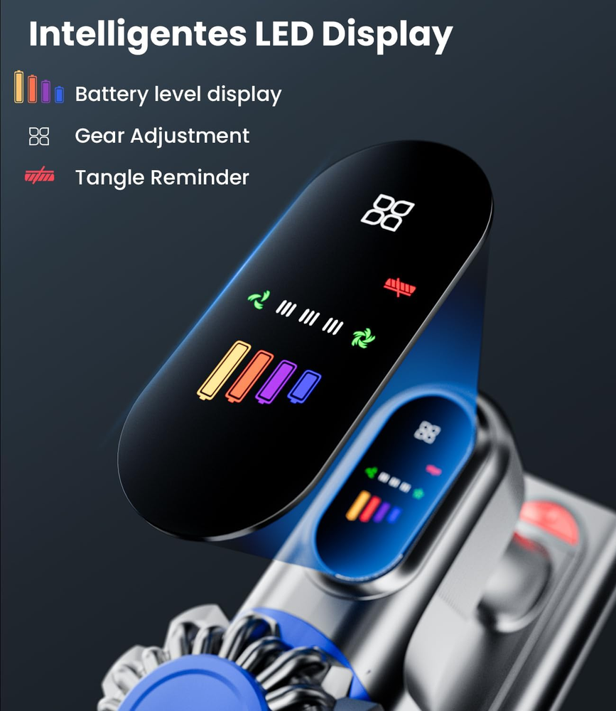 Experience unparalleled cleaning efficiency with the Cordless 500W Vacuum Cleaner, designed to tackle a variety of surfaces in your home. With its robust 450W motor, this vacuum delivers an impressive suction power of 40Kpa in MAX mode, effectively capturing dust, debris, pet hair, and even tough stains from carpets, hardwood floors, and tiles. Its versatile design ensures that maintaining a clean and healthy living environment is effortless, making it an indispensable tool for pet owners and families alike. The vacuum boasts a remarkable runtime of up to 60 minutes in Min mode, thanks to its 7*2800mAh high-capacity removable batteries. In MAX mode, you can enjoy 20-25 minutes of intense cleaning power, allowing you to complete your cleaning tasks without the inconvenience of frequent recharging. Additionally, the innovative V-shaped anti-tangle roller brush ensures uninterrupted cleaning by preventing hair and pet fur from getting caught, while the integrated green LED light helps you spot hidden dirt in dark areas. Product Description 500W motor providing powerful 40Kpa suction for effective cleaning. 60 minutes of runtime in Min mode for uninterrupted cleaning sessions. V-shape anti-tangle roller brush designed to prevent hair clogs. Smart LED display for real-time information on suction mode and battery life. 8-in-1 versatility with multiple accessories for various cleaning tasks.