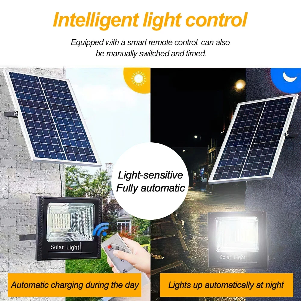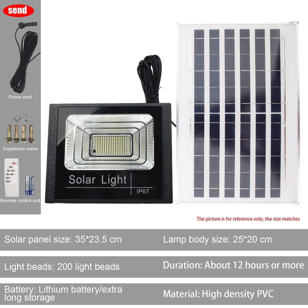500W LED Solar Floodlight Panel Street Lights Outdoor Waterproof Remote Control Feature: Light-operated :automatic turn on /off - Suitable for pathway, lawn landscape, garden, backyard, hotel and other occasions. - It can be used as wall light, street light, lawn light, etc. - Easy to install and remove. - Durable, energy-saving and long services. Specification: Power:500W Solar panel: polysilicon 6V 5W Battery: lithium iron phosphate battery / 18000mah LED: 200PCS Lighting time:12-15H Lighting range: 45-100 square Lamp body size: 220*260*30mm ( 8.7"x 10.3") Solar panel size: 240*350*17mm Package Included: 1x Floodlight 1x Solar Panel 1x Remote Controller Shipping Policy Payment Method Returns Policy Feedback Contact us Shipping Policy All item will be carefully packaged very well with safe material and shipped to US States. Items will be sent in 2 working days,usually shipped by USPS Priority Mail. It will take about 3-5 days to US addresses. If you would like to ship by other shipment methods,please contact us.( shipping cost will be combined for multiple items you purchase at a time.) Payment Method Only PayPal is acceptable.It is a safe and easy payment method for buyers. Please pay in 48 hours after you win the item(s).If payment cannot be made in five days,your order(s) will be claimed as unpaid case and the item will be relisted. Returns Policy Customer satisfaction is our first priority. 30-days return is available after delivery. However, return shipping and insurance cost will be on buyers. Please email us before returning. Delivery date will be different according to UPS or USPS tracking system, so please inspect your item immediately upon arrival. Money will be return to you after the return item is sent back. We can not refund to you, if your return item is broken or damaged. Please ensure its safety. Feedback Your feedback is very important to us. If you can't leave us a "5-Star" rating and a positive feedback, please contact us without hesitation before leaving feedback. We are eager to work with our customers. We believe in communication. Give us a call or send us an email, we will make things right for our buyers. Positive feedback for our buyers will be left automatically by eBay Seller Manager Pro. Contact us 1. If in doubt, please send us an email. Our customer service team will provide a satisfactory answer What we do is 100% satisfaction for your customers 2. Except for Sundays and festivals all mail is sent and received within 24 hours