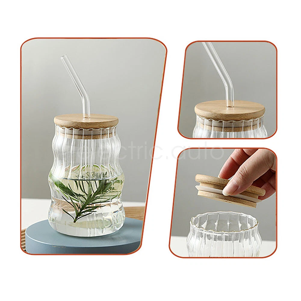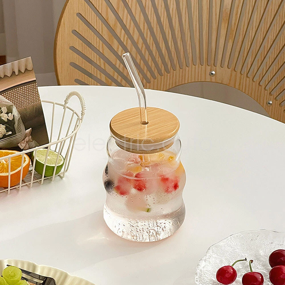 500ml Clear Glass Mug with Lid and Straw for Coffee Tea Milk