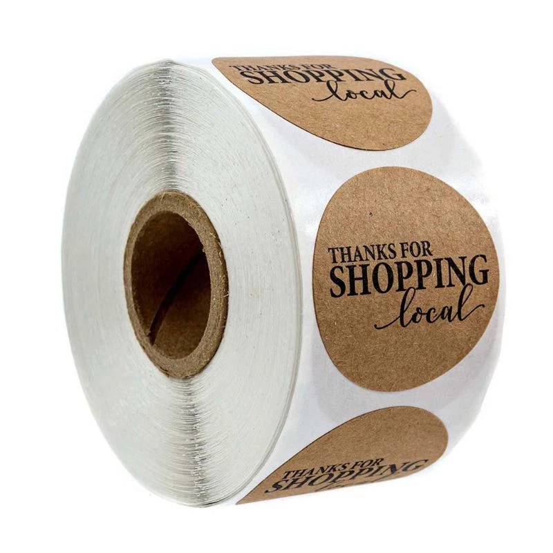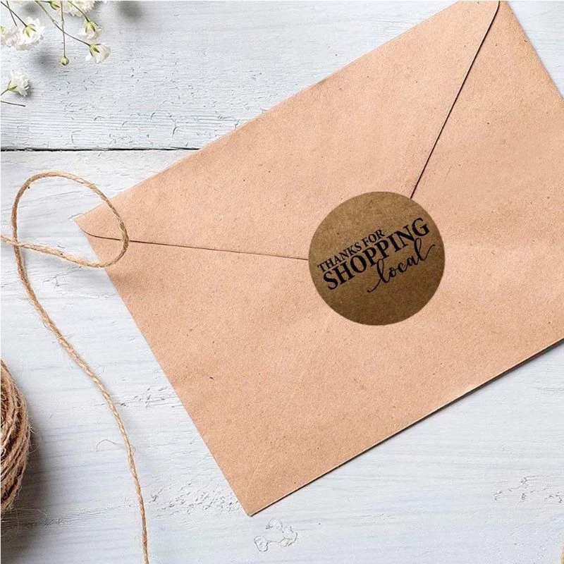 500pcs Kraft Paper Thanks for Shopping Local Stickers Round Seal Label Scrapbook