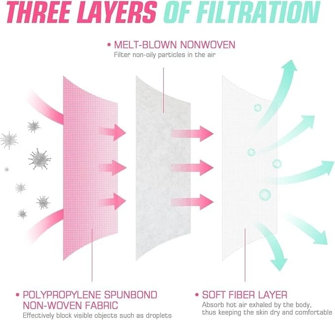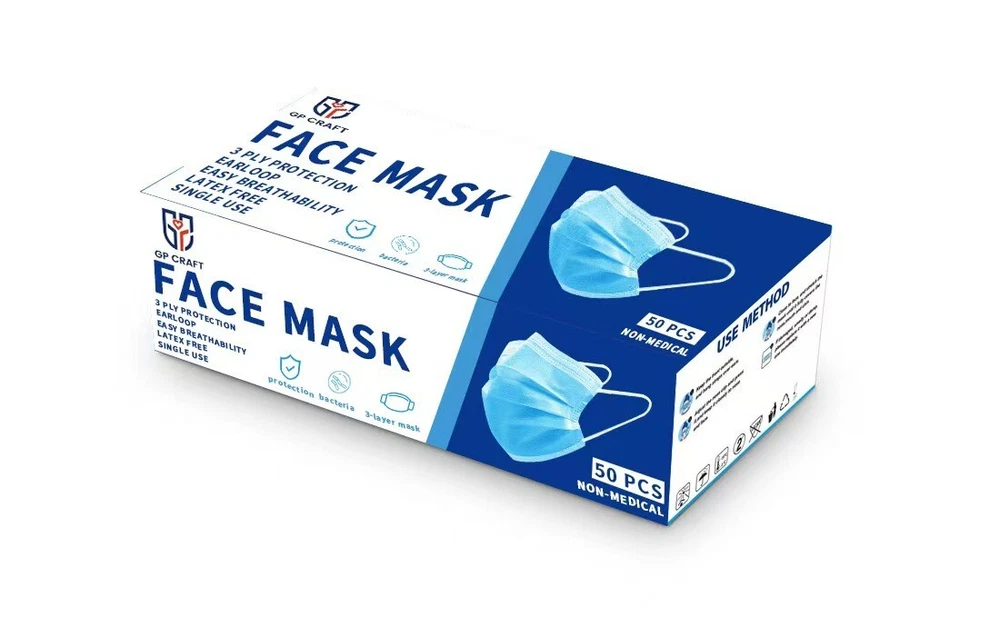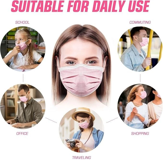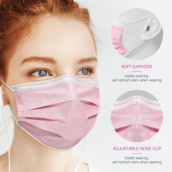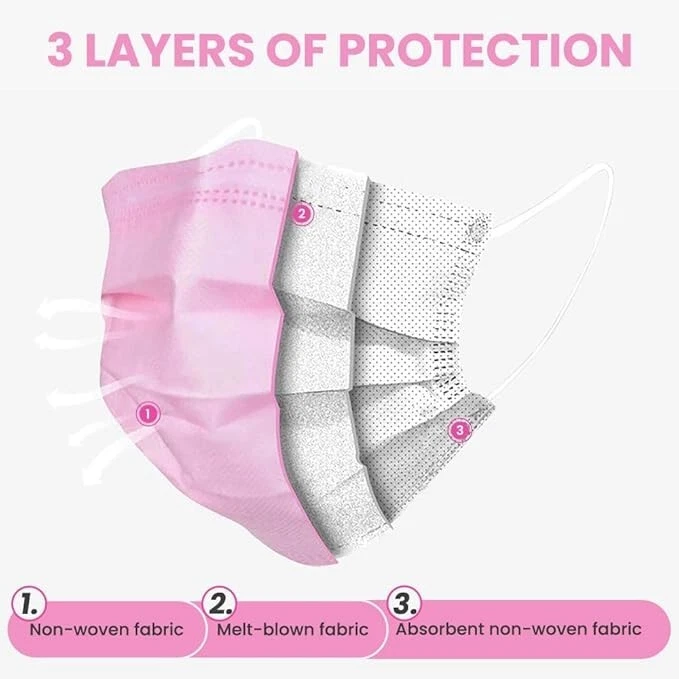 100% Nonwoven Imported Disposable Sanitary Face Mask 3-Layers of Non-Woven Fiber Fabric to Provide Fine Filtration and Maximum Breath-ability Comfortable to Wear for Hours and Maximize the Protection at the Same Time