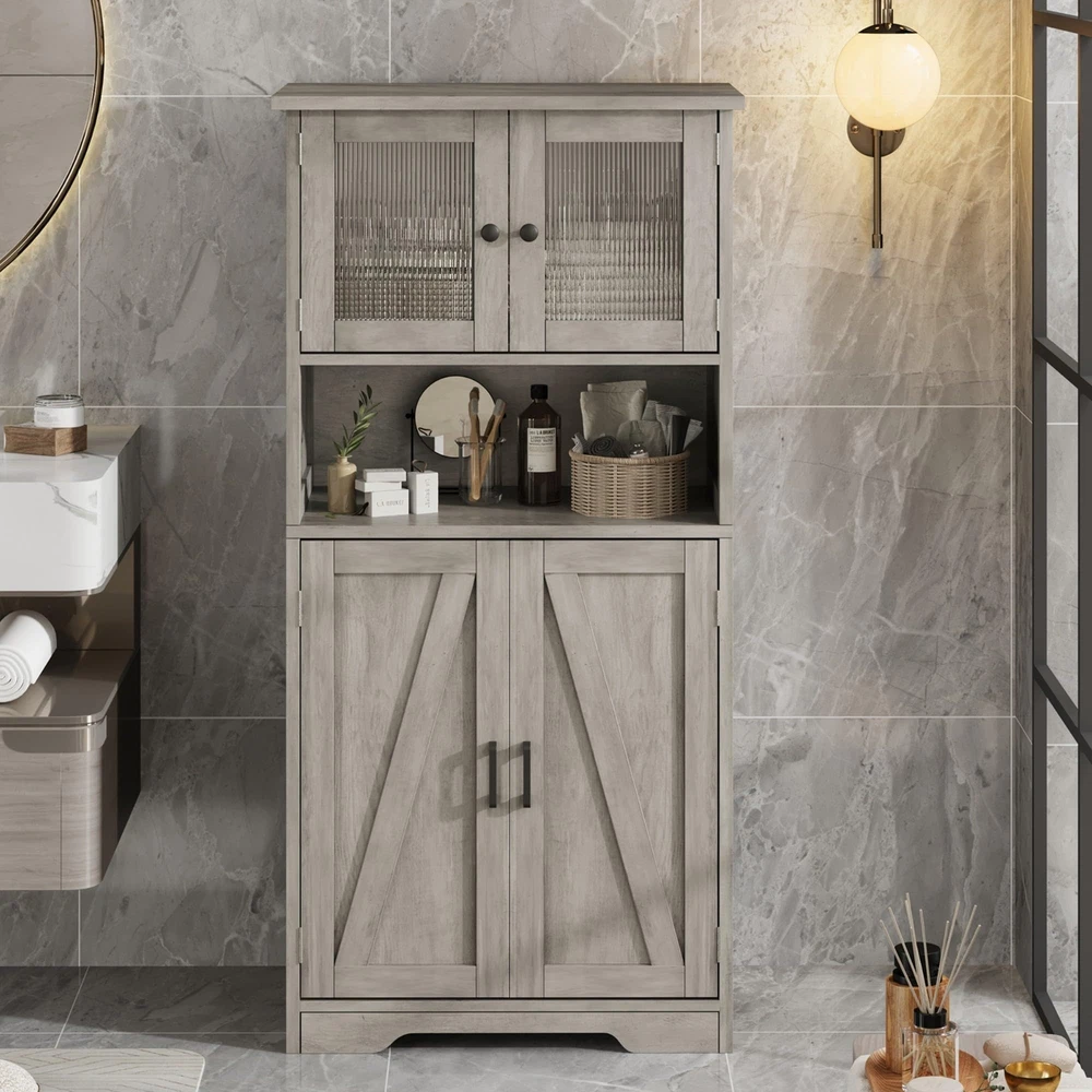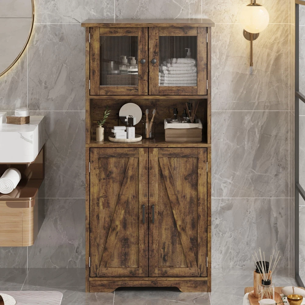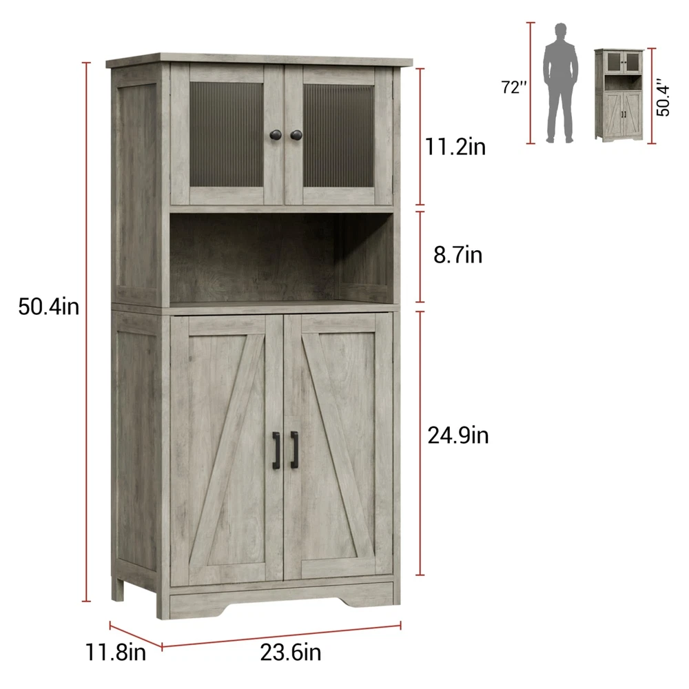Bathroom Cabinet, 50.4" Storage Cabinet with Glass Doors and Adjustable Shelves, Freestanding Kitchen Pantry Cabinet, Farmhouse Floor Cabinet for Bathroom, Living Room, Dining Room,White/Brown/Gray Farmhouse and Versatile Design: Elevate your home with this stylish bathroom storage cabinet featuring elegant glass doors and streamlined lines. This multifunctional cabinet serves as a bathroom floor cabinet, pantry cabinet, and even a linen cabinet, seamlessly fitting into any room, including the kitchen and living room Flexible Storage Options: Equipped with an open compartment and adjustable shelves, this bathroom cabinet allows you to organize your towels, toiletries, and other essentials with ease. It's the perfect solution for optimizing bathroom space while keeping everything readily accessible Sturdy and Safe Construction: Crafted from high-quality MDF and moisture-resistant materials, this freestanding bathroom storage cabinet ensures durability and stability. It features anti-tipping hardware, ensuring the utmost stability and security Easy Assembly Process: Enjoy a hassle-free setup with our well-organized parts and detailed assembly instructions. This kitchen cabinet is designed for quick assembly, allowing you to enjoy its functionality in no time Effortless Cleaning and Maintenance: The smooth surface and waterproof materials of this bathroom cabinet make cleaning a breeze. Keep your home looking pristine with minimal effort, while the stylish design enhances your decor in any setting Payment Delivery details Terms of sales About us Contact us Payment We accept payment either via PayPal or any of the following credit cards; Visa, MasterCard, Discover, and American Express. Delivery details 1. We will delivery out at the handing time when we receive the payment. 2. The delivery time is 3-5 business days to US by usually time.The parcel maybe delay 1-2day of the weekend.Due to the bad weather,Holidays,Hot Season ect.the parcel maybe delay,If you have any problems,mssage us,we will try our best to solve it. 3. We ship to your eBay address. Please make sure your eBay address is correct before you pay. 4. If you want to change the shipping address,message us before our send out. Terms of sales If you are not satisfied with the item for any reason, please do not quick to leave negative/neutral feedback even open request and case without any communication with us. We devote ourselves making EVERY CUSTOMER in 100% Satisfactory and resolve any problem. Thank you for your understanding and recognition,we are always leave positive feedback to all our customers. About Reply: All replies will be sent to your email box, if you do not get response within 24 hours (Sat. & Sun. excluded) please check your eBay My Messages in case that our emails will be filtered automatically by your settings. About us automobilee-01 is a brand new store but we are one of North America’s top online suppliers of specialized, high-quality aftermarket online retailers and suppliers, committed to developing new markets. We primarily offers tool sets, auto parts, home goods, etc..With over 20 years of product selection and manufacturing experience, we delivers unparalleled quality, value, service and satisfaction. Our highly-trained, professional staff offer in-depth knowledge and personalized assistance for customers worldwide. Providing our customers with a simple, hassle-free experience with best-in-class customer service is more than a goal. Contact us Any problem please rest assure to contact us by eBay message first. We will reply you as soon as we can. We will deal with it within 24hs on working days. Brand Unbranded Type Cabinet Features Adjustable Shelves, With Doors Style Contemporary/Modern MPN Does not apply Shape Rectangular Room Living Room, Bedroom, Kitchen Mounting Freestanding Department Adults Material Engineered Wood, Glass Care Instructions Easy Care Assembly Required Yes Door Style Flat Panel Item Length 23.6 in Item Width 11.8 in Item Height 50.4 in Product Dimensions 11.8"D x 23.6"W x 50.4"H Item Weight 39 pounds Number of Doors 4 Model Kitchen Pantry Cabinet