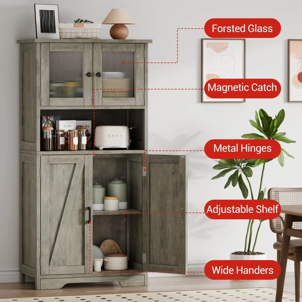 Kitchen Pantry Hutch Storage Cabinet, Farmhouse Kitchen Hutch Buffet Cabinet
