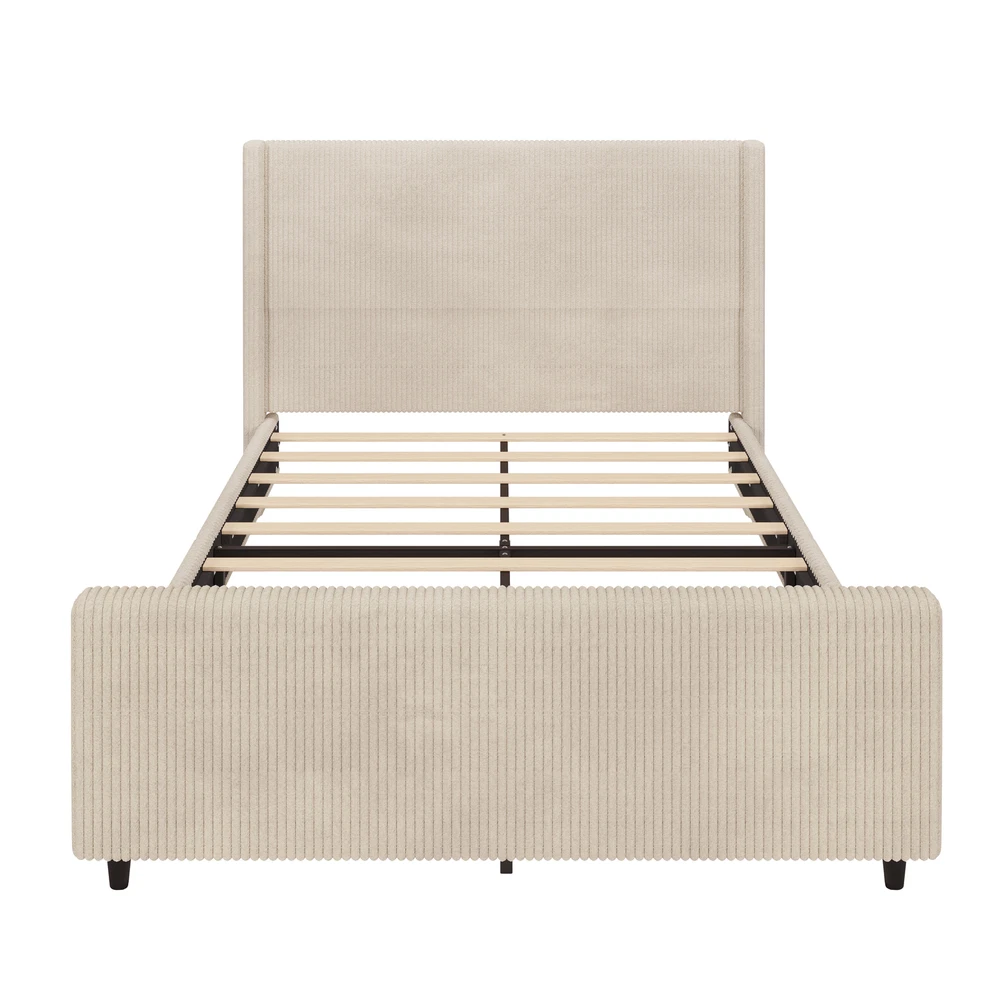 Brand Unbranded Item Length 62.6 Item Width 23.62 Item Height 8.46 Color Cream Frame Material Wood Type BED FRAME Compatible Mattress Size As described Diamond-ring-1 Simple life 50.7'' High Headboard Corduroy Upholstered Bed Frame with Vertical Stripe Wingback and High Footboard No Box Spring Needed, Queen Size, Cream Elegant Platform Bed: The bed frame is crafted from premium corduroy, boasting a unique texture that enhance the bedroom with a touch of modern beauty. Soft & Cozy- Benefited from the soft corduroy, and thick foam padding the designer takes on, the upholstered bed frame brings cozy experience beyond imagination, will have you feeling sheltered in comfort and luxury 50.7" Winged Headboard:Feature vertical channel tufting in soft fabric, provides extra support for your neck and back. Thick wings give a unique and classical appearance. Sturdy Platform Bed: Designed for stability, wooden slats and metal support legs provide a solid foundation, effectively eliminate squeaks, and ensure a quiet and undisturbed night's sleep. Easy to Assemble: Clear and detailed instructions make the assembly of the tufted bed frame simple. Recommended 2 people to install to ensure a barrier-free installation experience. Stable Structure The bed frame is constructed of a sturdy metal joint frame and closely spaced wooden slats. The load capacity of 600 pounds Raised Headboard & Footboard High wingback Headboard (51.7") and footboard (24.5") are evenly spaced to hold the foam in place for maximum comfort and support. High-Quality Fabric Skin-friendly Fabric with a comfortable feel and elegant look. This upholstered platform bed is easy cleanability. Modern Design Vertical channel tufted corduroy fabric and wingback headboard Product details: Weight Capacity 600 LBS Frame Material MDF+Metal Fabric Material Corduroy Assembly Required Yes Recommend Mattress 12-15‘’ Item Specifics Brand Unbranded Item Length 62.6 Item Width 23.62 Item Height 8.46 Color Cream Frame Material Wood Type BED FRAME Compatible Mattress Size As described Payment Returns Diamond-ring-1 Simple life DESCRIPTION PAYMENT SHIPPING RETURN POLICY CONTACT US Shop Category Store Home Other Hot Item Delivery New List Item Help & Info Payment Policy Shipping Policy Return Policy FAQ About Us 50.7'' High Headboard Corduroy Upholstered Bed Frame with Vertical Stripe Wingback and High Footboard No Box Spring Needed, Queen Size, Cream Elegant Platform Bed: The bed frame is crafted from premium corduroy, boasting a unique texture that enhance the bedroom with a touch of modern beauty. Soft & Cozy- Benefited from the soft corduroy, and thick foam padding the designer takes on, the upholstered bed frame brings cozy experience beyond imagination, will have you feeling sheltered in comfort and luxury 50.7" Winged Headboard:Feature vertical channel tufting in soft fabric, provides extra support for your neck and back. Thick wings give a unique and classical appearance. Sturdy Platform Bed: Designed for stability, wooden slats and metal support legs provide a solid foundation, effectively eliminate squeaks, and ensure a quiet and undisturbed night's sleep. Easy to Assemble: Clear and detailed instructions make the assembly of the tufted bed frame simple. Recommended 2 people to install to ensure a barrier-free installation experience. Stable Structure The bed frame is constructed of a sturdy metal joint frame and closely spaced wooden slats. The load capacity of 600 pounds Raised Headboard & Footboard High wingback Headboard (51.7") and footboard (24.5") are evenly spaced to hold the foam in place for maximum comfort and support. High-Quality Fabric Skin-friendly Fabric with a comfortable feel and elegant look. This upholstered platform bed is easy cleanability. Modern Design Vertical channel tufted corduroy fabric and wingback headboard Product details: Weight Capacity 600 LBS Frame Material MDF+Metal Fabric Material Corduroy Assembly Required Yes Recommend Mattress 12-15‘’ Item Specifics Brand : Unbranded Item Length : 62.6 Item Width : 23.62 Item Height : 8.46 Color : Cream Frame Material : Wood Type : BED FRAME Compatible Mattress Size : As described Payment Returns All rights reserved.