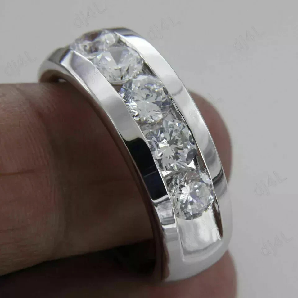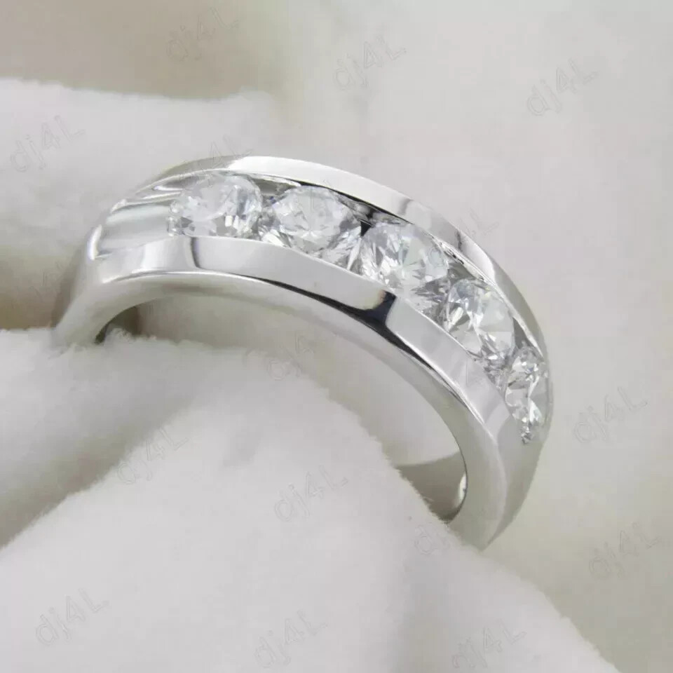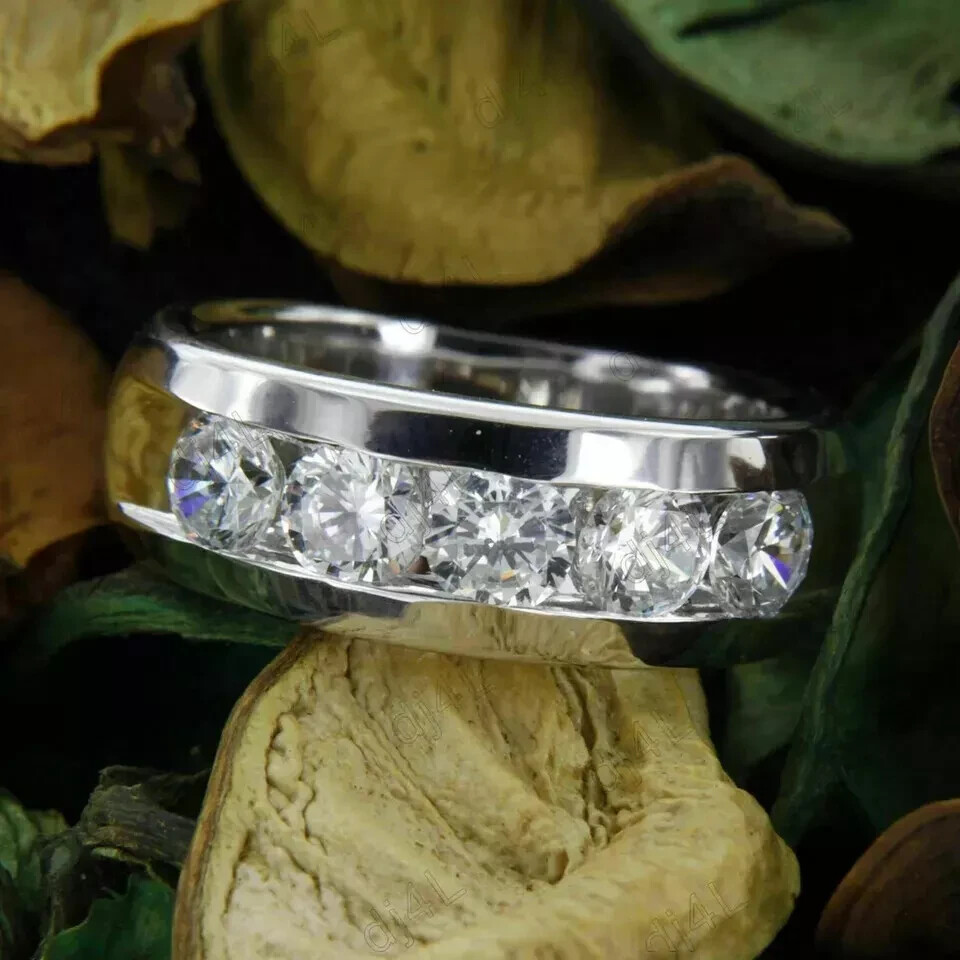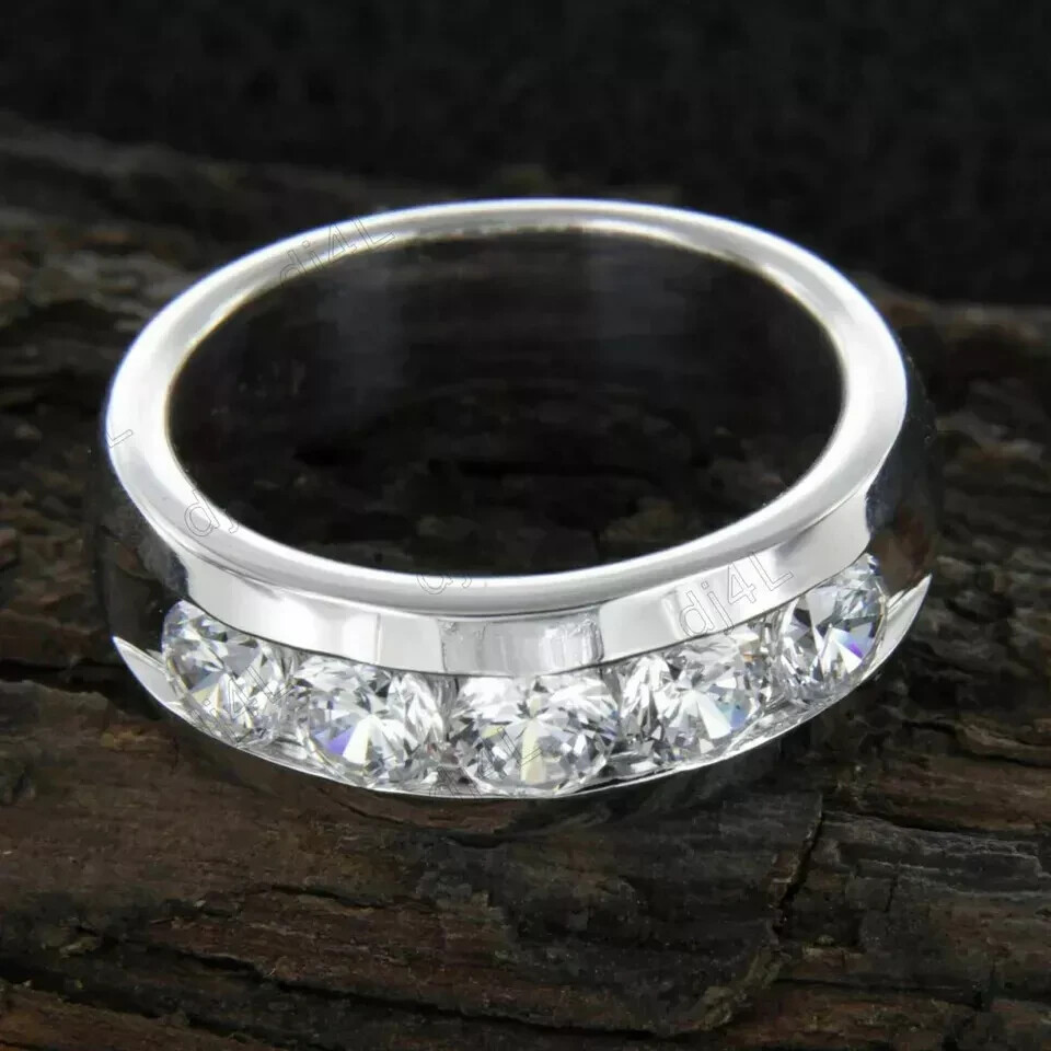 5.0Ct Round Moissanite Men's 5-Stone Wedding Band Ring Real 925 Sterling Silver Customization: Want to add your personal touch to this piece? Contact us and we will create one just for you. Most customization requests include: 1) Ring Resizing 2) Redesign 3) Metal Change (Silver/10K Gold / 14K Gold /18K Gold) 4) Metal Color Change (White/Yellow/Rose/Black) 5) Color Stones (White Topaz, Pink Sapphire, etc) 6) Engraving (Name or any message - no of characters subject to size of jewelry) 7) Anything under the sun that catches your fancy, we will give it a try :) Payment: We accept payment via PayPal only. You can also pay using your credit card, via paypal, by using paypal as a guest. Payment is required within 3 days of the sale of an item. Shipping: International shipments are usually delivered within 2 to 6 weeks, depending on the time taken to clear customs. We are not responsible for any delays due to customs. Please note that all countries charge a duty on imported goods. A customs clearing charge is also imposed in many countries. We are not responsible for the amount of duty or any other related charges. Terms & Sale: We want to ensure that you are completely satisfied with your purchase. If not, then please let us know before leaving any feedback and allow us to work with you to completely resolve any issues that you might be facing. You can return the item for a full refund LESS shipping, within 14 days of item(s) receipt date. There is no restocking fee. 100% Satisfaction Guaranteed. All returns must reach us within 14 days after the item was delivered to you the item must be in the original condition and with the original tags attached. Contact Us: You can contact us by clicking on 'ask seller a question'