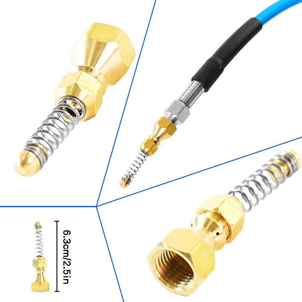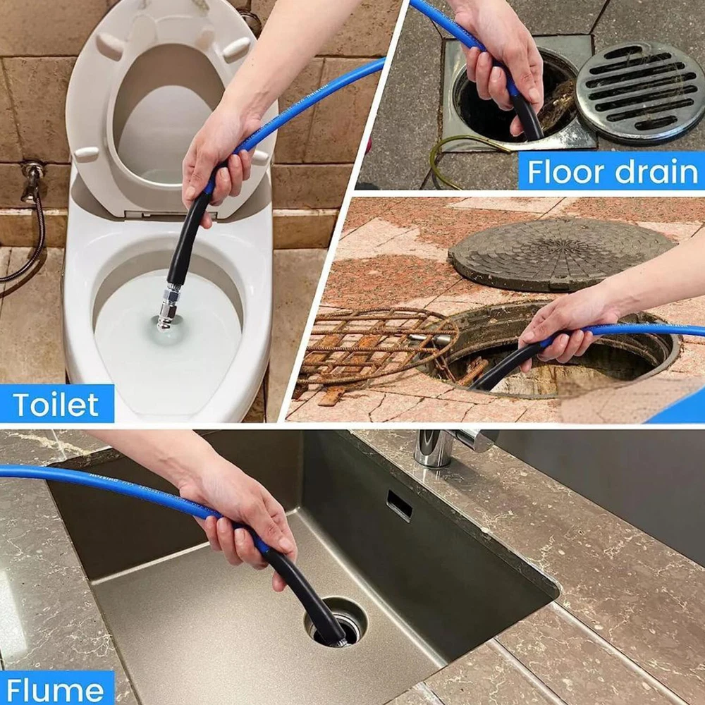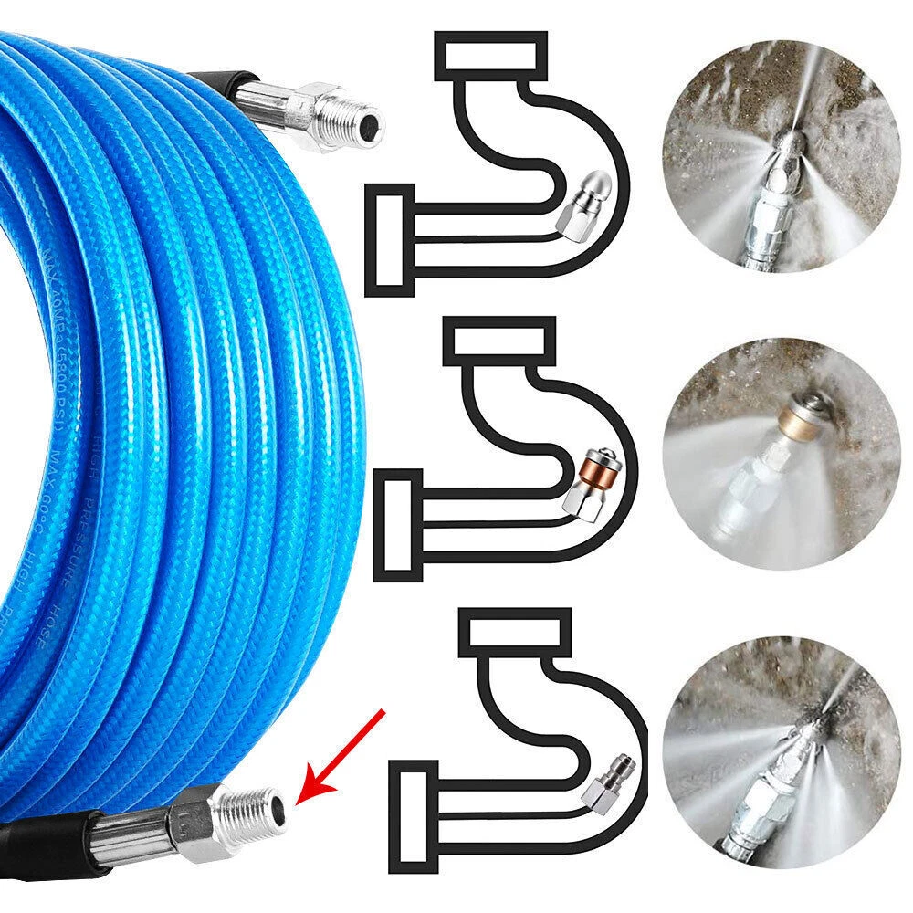 Features 【High Quality Hose】 【Utility Tools】 【Sewer Jetting Nozzles】 【Drain Jetter Nozzle】 【Quick Connect Plug】 Package include 1 X Sewer Jetter Kit, 1x Handle Strap For Storage, 1 X 1/4 Quick Connect Plug, 1 × M22 Female To 1/4'' Female Npt Coupler 1 X M22 Coupler 1 X Button Nose Nozzle 1x Rotating Sewer Jetter Nozzle, 1x Corner Sewer Jetter Nozzle 1 X Thread Seal Tape 1 X Box Of Pearl Corsage Pin, 2 X Spanners Sewer Jetter Kit for Pressure Washer Drain Cleaner Hose 100FT 1/4" M-NPT 5800PSI Features 【High Quality Hose】 High pressure washer hose with working pressure up to 5800PSI, inner hose made of thermoplastic polyester tubing reinforced with chemically bonded 1/4" high tenacity polyester braid, outer hose made of thermoplastic polyester tubing, all materials are of high quality to withstand the effects of sunlight, oils, ozone, and abrasion to prolong the product's lifespan. 【Utility Tools】: The pressure washer drain jetter can be used indoors and outdoors to clean cars, motorcycles, driveways, roofs, bathrooms, swimming pools, siding, windows, floors, gutters and more. We added 2 wrenches for installing nozzles or accessories, 1 box of pearl brooches to help clear clogged nozzles, waterproof tape to prevent nozzles from leaking, and equipped with a handle storage strap for easy carrying and storage. Thoughtful accessories make your use stress-free to use. 【Sewer Jetting Nozzles】: Button Nose Sewer Jet Nozzle clears clogs and flushes away debris by spraying 0° in the front and driving 3 33° jets in the back; Corner Sewer Jet Nozzle clears clogs in corners by spraying sideways, and the 3 rear nozzles are angled at a 33° angle to flush out debris and clogs from the front nozzles. 【Drain Jetter Nozzle】The rotating sewer jet nozzle provides even cleaning with 3 backward rotating jets that spray into clogged pipes; the pointed nozzle has 1 front and 6 rear jets, the front jets are good for cutting through debris and removing stubborn materials, and the rear jets drive the nozzle forward to flush out debris and clogs for a more effective cleaning. 【Quick Connect Plug】: Quick Connect Plug for Sewer Jetter Hose (Female M22 to Female 1/4'' NPT) is used in many high pressure connections that are often assembled or disassembled, and is ideal for quick replacement of sewer jetter hoses, medium/high pressure washer pumps, lances and nozzles, each time it makes a solid connection to the quick connect, allowing easy flushing of obstructions and Increase your cleaning efficiency. Package include 1 X Sewer Jetter Kit, 1x Handle Strap For Storage, 1 X 1/4 Quick Connect Plug, 1 × M22 Female To 1/4'' Female Npt Coupler 1 X M22 Coupler 1 X Button Nose Nozzle 1x Rotating Sewer Jetter Nozzle, 1x Corner Sewer Jetter Nozzle 1 X Thread Seal Tape 1 X Box Of Pearl Corsage Pin, 2 X Spanners Payment Shipping Return Contact us About us Payment 1.Paypal, Credit Card, G Pay etc, many payment way is accepted. 2.Please be sure your shipping address is correct before make a payment. Shipping 1.We are shipping from multiple warehouses (Houston, Texas/ Corona, California) , please note before placing an order 2.We will ship out the item within 1-3 business days after comfirming the payment, appreciate your patience. 3.If the items are broken on the way( we will check the orders clearly before we sent them ),please contact us in 3 days you received it. We will send you a new one or refund your payment. Return 1.We stand behind every buyer.Items can be returned for exchange or refund within 30 days. 2.Please contact us when you have any confusion of our item, we will solve the trouble for you as soon as possible. Contact us 1.This is professional Seller.We will reply your message within 24 hours. 2.Please contact us whenever you have any question about the item. We will deal with it as soon as possible. 3. If you are unhappy with the item or our service,please Contact Us before leave feedback,just give me a chance,thank you! About us 1. Unless specified otherwise, all our products are IN STOCK and are shipped from Local warehouse - Not Overseas! 2. We provide a 30 day Satisfaction Guarantee or your money back (provided items are in the same new and resaleable condition.) 3. We have a PayPal Verified Business Account, please buy with Confidence! 4. Every item will be tesrted before send.We know our products well and if we don't have the answers we will do our best to find them for you! 5. Our friendly team look forward to serving you! Your satisfaction is our No.1 Priority We will do our best to satisfacy you.