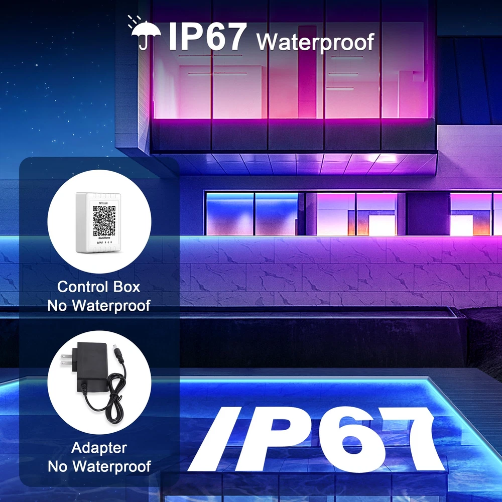 RGB Neon Rope Lights 【Enter the Neon World】 Neon lights strips offer a richer color palette than regular LED strip lights. Decorate your bedroom, gaming room, or accent wall with neon rope light, and turning them on feels like stepping into a cyberpunk world. Neon LED rope lights have different modes to suit a variety of occasions (Note: neon rope lights can only present one color at a time) 【Shape It to Your Desire】 Flexible neon led lights for bedroom can be easily bent into different shapes. You can simply install them around the contours of objects or unleash your imagination to bend them into shapes like hearts, guitars, game controllers, and more to match any style you desire. (Tip: secure them with the included screws and clips) 【Two Ways to Control】 Neon rope lights indoor can be controlled via an app or the included remote. The app allows for fine-tuned personalization with 16 million color combinations, preset scene modes, music mode, and timer functions. The app "illumihome" is available on Google Play and the iOS App Store 【Outdoor Use Supported】 Neon RGB lights for room aren't just for indoor ambiance enhancement; they can also be used for outdoor decoration. The neon strip lights are IP67 waterproof, so you don't have to worry about water damage. Note: The power supply and controller (the white box with a QR code) are not waterproof 【Durable and Energy-Efficient】 The neon leds for bedroom undergo durability testing before shipment, ensuring brightness and lifespan. A 32.8ft neon light strip contains 300 LED beads, providing ample brightness for various occasions. It also comes with a 24V power supply, which consumes less energy and generates less heat than traditional neon lights. (Package contents: 50ft neon light strip *1, control box *1, power adapter *1,screw and fixture set *1) 【Note】Neon rope lights are mainly used as atmosphere lights in the bedroom, and they are used for different shapes and decorations. The brightness is not enough for lighting