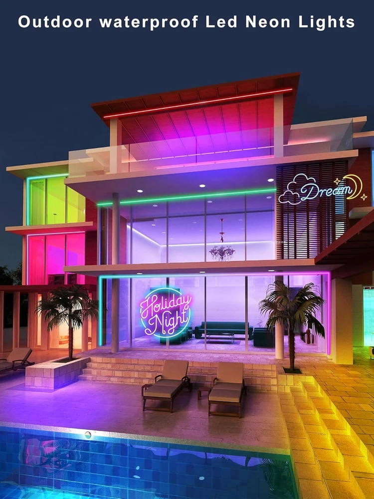 Menu Other Items Feedbacks About Us Contact Us Add To Favorites 50Ft LED Neon Rope Lights with App and Remote Control, IP65 Waterproof Neon Strip Lights for Outdoor Indoor, DIY Design Flexible Led Rope Lights for Bedroom, Living, Gaming, Party Decor 【Ultra-Bright RGB Light Strip】Our RGB LED light strip features 1080 LED beads with a side brightness design and a 120-degree projection design that make the LED light strip brighter. It provides a larger illumination coverage area with even light distribution, and the brightness is adjustable. You can use an application or a remote control to set the color of the light strip, with over 16 million colors to choose from, allowing you to DIY your favorite colors 【Music Sync Ambience RGB Light Strip】Our flexible neon light strips can synchronize with music, featuring a built-in microphone that can sense music or other sounds. This creates a perfect lighting atmosphere for you, enhancing your gaming setup, living room, or bedroom, allowing you to create the perfect mood and atmosphere for any occasion 【Smart APP Control & IR Remote Control】Our neon smart LED strip lights come with a wide range of features that make them easy to use and control. You can choose the pre-set color or mode through the cell phone APP or the remote control, and you can also DIY your favorite color and modes. Remote control it freely in a straight line up to a range of 5 meters. It also has a timing function that allows you to schedule the lights, making it a wake-up light 【Waterproof & Safe】Our neon strip light is not only suitable for indoor use, but also perfect for outdoor lighting with an IP65 waterproof rating (NOTE: Controller is not waterproof). The neon LED strips are powered by 24V low voltage, and the shell is resistant to high temperature. Perfect choice for indoor or outdoor use 【Wide Application】Our flexible neon strips can be easily bent into various patterns. Just use the screws and snaps (package included) to fix the light strip. Due to their high brightness, multifunctionality, and safety, they are the perfect choice for bedroom lighting, party decor, hallway decoration, living room, game room, staircase, outdoor bar, window, and they are also suitable for Christmas, Halloween, and other holidays Product Description Ledagic Waterproof Neon Strip Lights RGB Led Strip Lights Outdoor for Whole Places Ledagic Led Neon Rope Light Meet Your Diverse Lighting and Usage Needs Ledagic Neon Strip Lightss for Indoor and Outdoor Use Wide Range of Uses Outdoor Neon Led Lights Our neon led rope lights is suitable for use in a variety of indoor and outdoor settings, including roofs, eaves, pools, decks, garages, and other locations.Our fancy led outdoor strip lights is ideal for children and friends and makes an excellent gift. Our neon led lights for room can be controlled by the MOHUAN LED app and remote control. The app offers a variety of operational modes, including music sync, 21 music modes, MIC mode, timer and all functions. The 44 keys remote control is straightforward to use and offers a comprehensive range of functions. Ledagic waterproof led light strips with remote is suitable for individuals, including children and the elderly, who may have difficulty using mobile phones Ledagic Neon Lights for Bedroom Your Timer Light Alarm Clock Our neon lights for bedroom comes with a timer function, you can set it to go off at bedtime and on at wake up time, making led lights for bedroom your light alarm clock Ledagic Flexible Led Strip Lights - Perfect Gaming Room Decoration Enhance Your Gaming Experience and Reduce Fatigue Ledagic music sync color changing LED strip lights are designed to change colour and speed in response to the rhythm of surrounding sounds and music, c reating a dynamic visual experience. Ledagic Diffused Led Strip Lights Waterproof Ledagic DIY Flexible Led Strip Lights Flexible led strip lights can be diy in various shapes or wrapped around railings, Christmas trees and other indoor and outdoor places Ledagic Waterproof Led Light Strips with Remote Our outdoor neon led light strips with remote is IP65 rated and dustproof, providing long-lasting protection for the strip. Rugged and durable for outdoor activities, it is your first choice of light as an outdoor decoration. Ledagic Neon Light Strip with Fixing Buckles The neon strip lights without adhesive backing has sufficient fixing buckles to make the installation of the light strip firm and not easy to fall off. 3 Easy Steps to Install and Enjoy the Light Show Item Specification Item model number LedNeon001-3 Light Source Type LED Style Modern Number of Items 1 Power Source AC Number of Light Sources 1080 Control Method App, Remote Theme function(f) {var _np=(window.P._namespace("DetailPageProductOverviewTemplatesJava"));if(_np.guardFatal){_np.guardFatal(f)(_np);}else{f(_np);}}(function(P) { P.when('A').execute(function(A){ A.on('a:truncate:po-attribute-truncate-7:updated', function(data) { var isTruncated = !data.truncateInstance.getIfTextFits(); var seeMoreElement = document.getElementById('po-attribute-see-more-id-7'); if(seeMoreElement) { seeMoreElement.style.display = isTruncated ? '' : 'none'; } }) }); })); Music Sync, Christmas, Birthday, New Year, Halloween, Father's Day, Mother's Day, Graduation, Wedding See more Controller Type Remote Control, App Control Connectivity Protocol Bluetooth Wireless Communication Technology Bluetooth Material Plastic, Copper Seasons All Seasons Package Dimensions 11.46 x 10.79 x 2.17 inches Included Components Neon Strip Lights*1, Controller*1, Remote Control*1, Power Adapter*1, Retaining Buckle*30, Instruction*1 Indoor/Outdoor Usage Outdoor Country of Origin China Light Color RGB Water Resistance Level Waterproof Batteries Required? No Item Weight 4.33 pounds Connectivity Technology Bluetooth Occasion function(f) {var _np=(window.P._namespace("DetailPageProductOverviewTemplatesJava"));if(_np.guardFatal){_np.guardFatal(f)(_np);}else{f(_