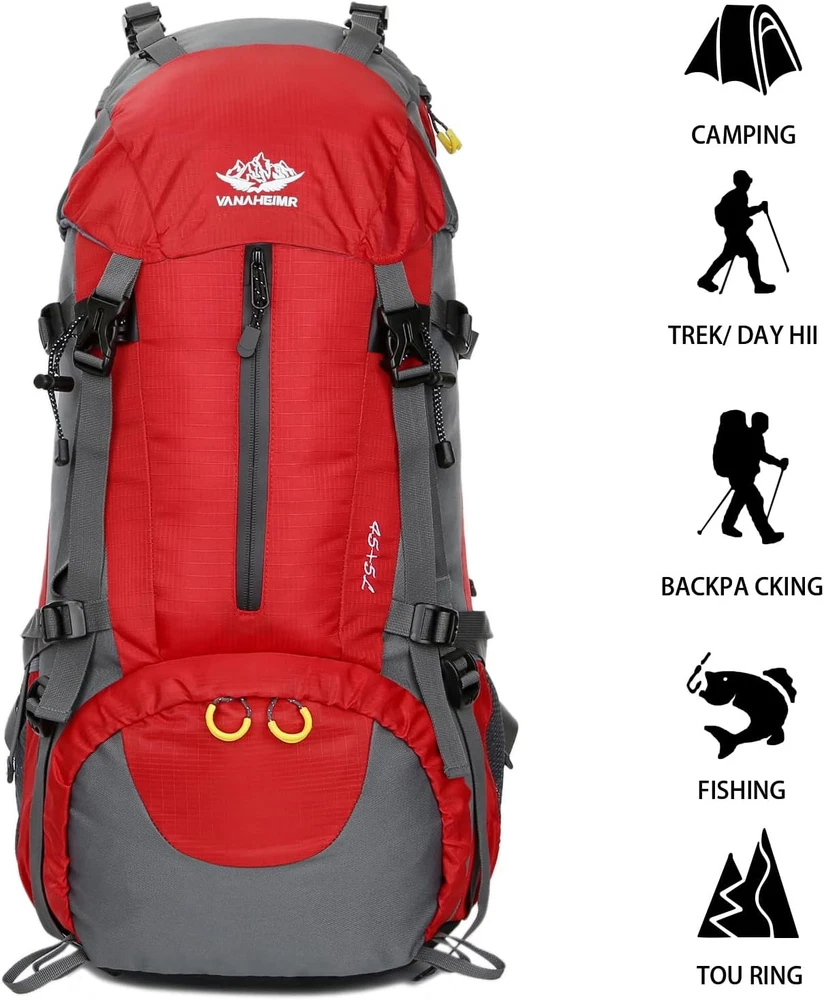 50L Hiking Backpack Men Camping Backpack with Rain Cover 45L+5L Lightweight Back