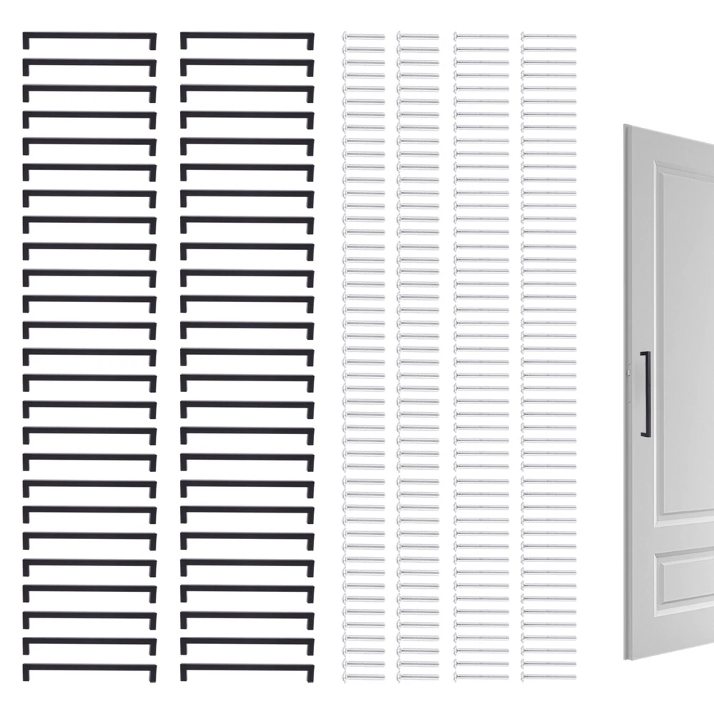 50PCS Black Square Modern Stainless Steel Cabinet Handles for Kitchen Drawers
