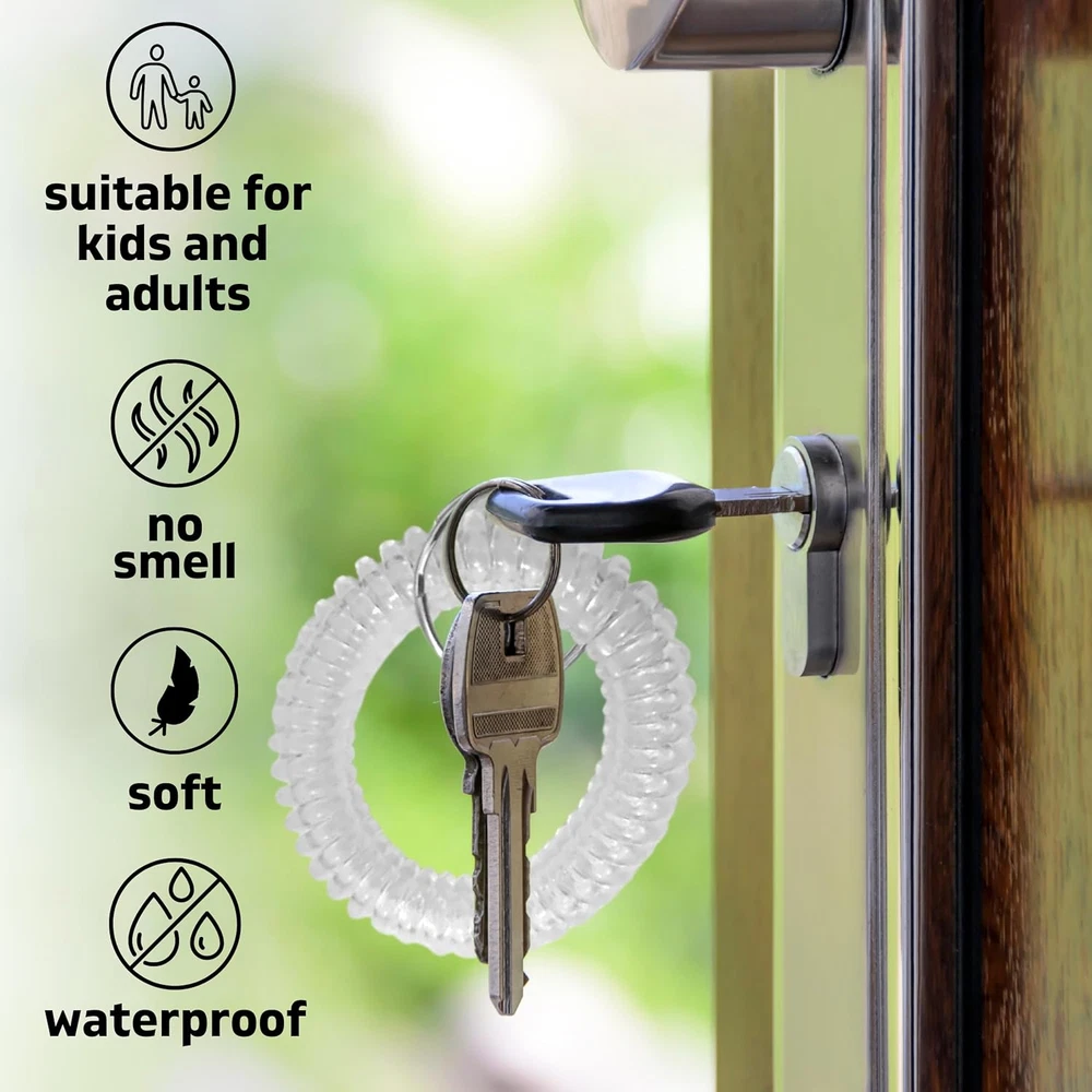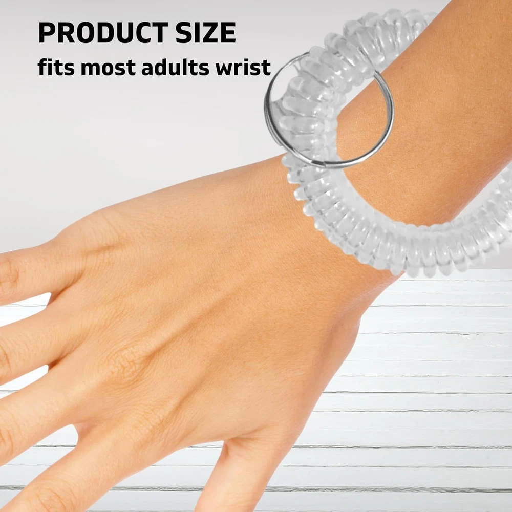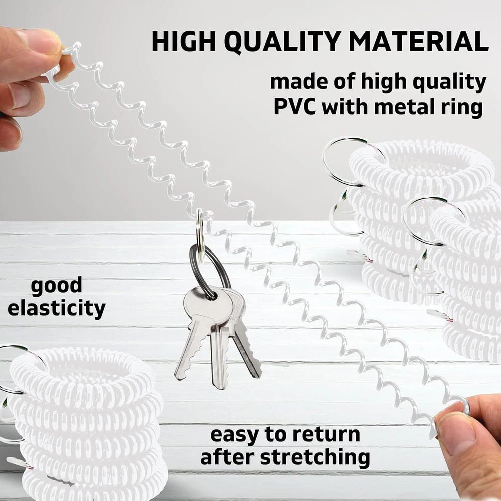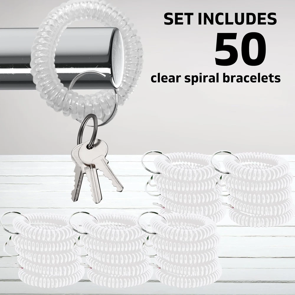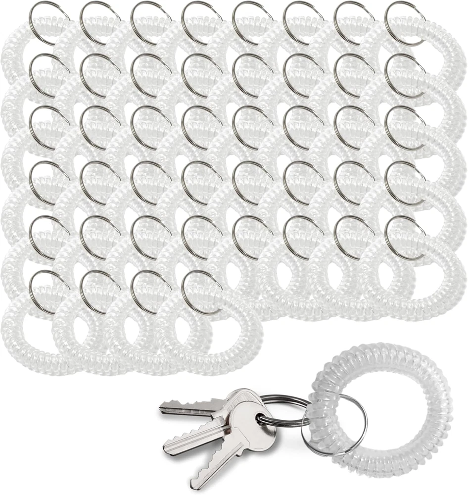 50PCS Clear Wrist Keychain – Crystal Clear Spring Spiral Wrist Coil Key Chain fo