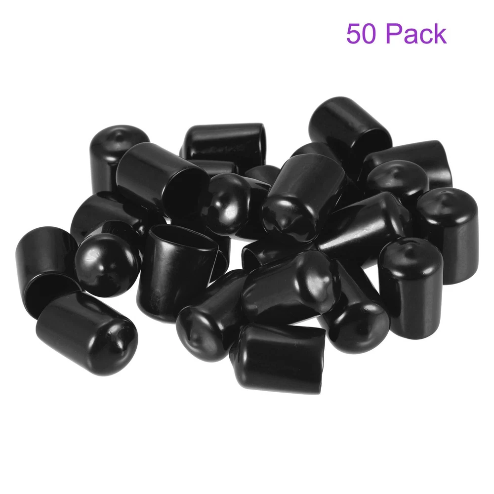 50Pack 17mm Black Rubber Screw Thread End Caps for Bolts