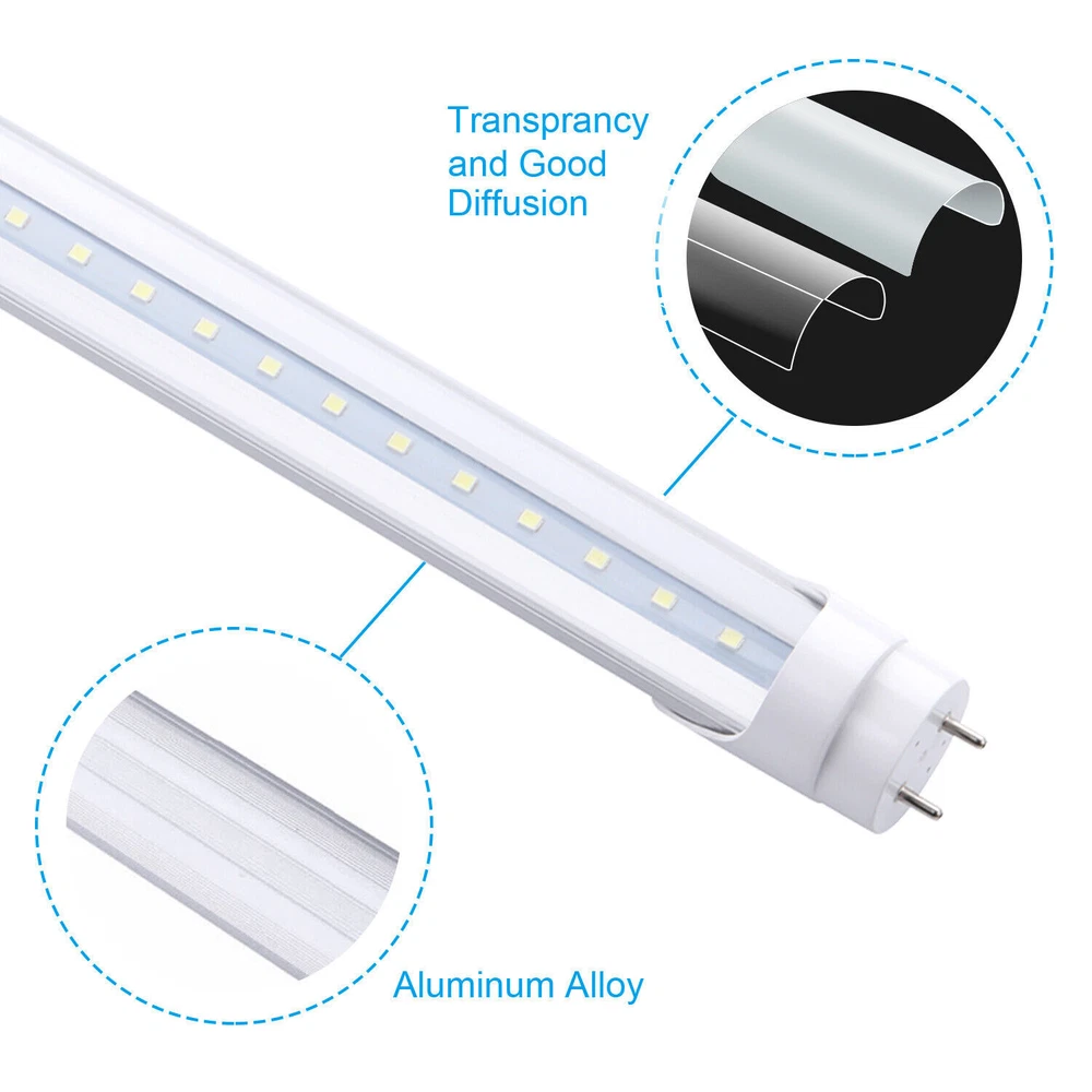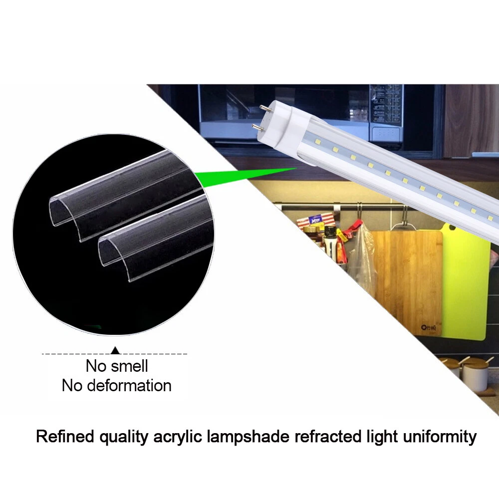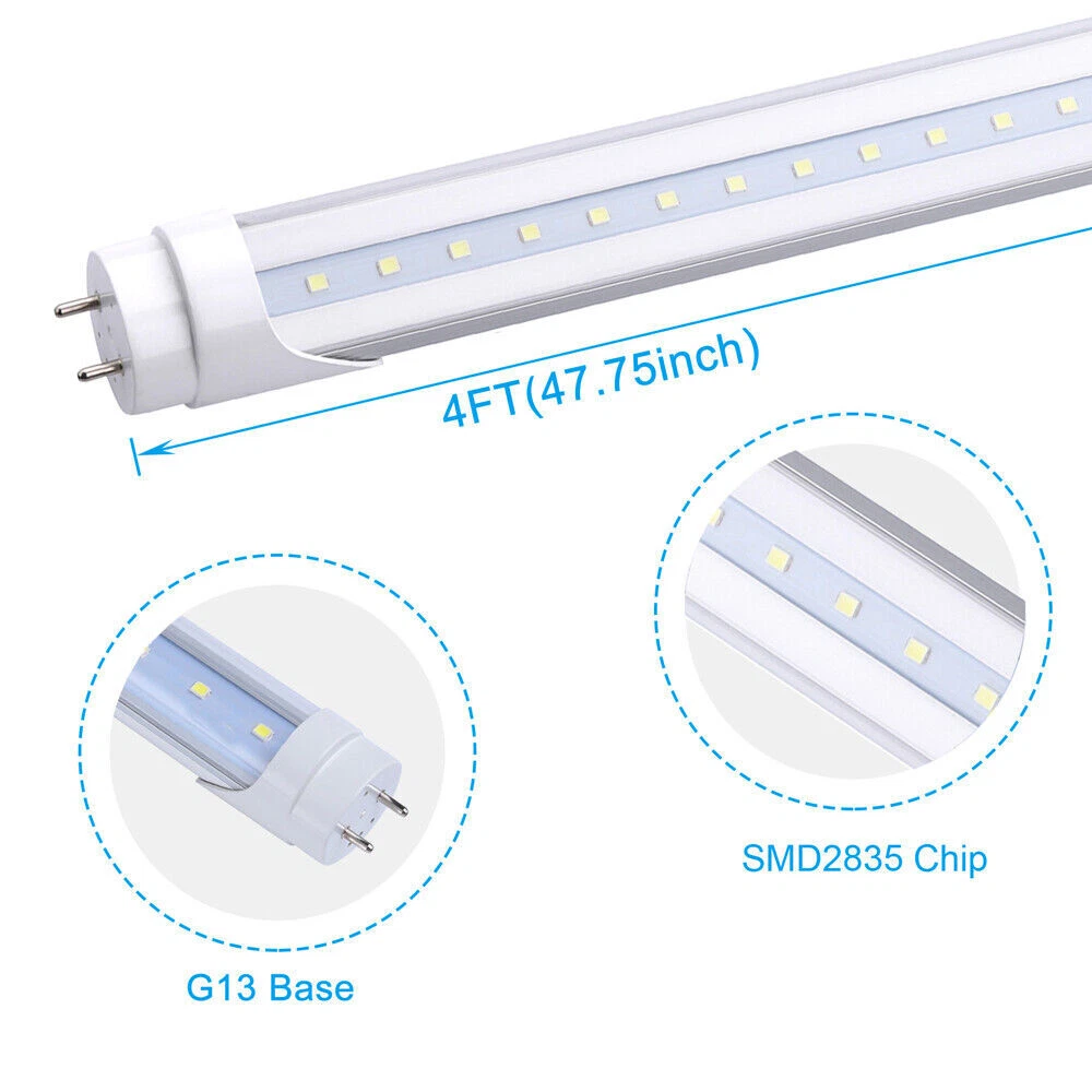 Features: 100% Brand new and high quality! Very low power: Save up to 90% energy consumption as compared to halogen lights with the same brightness Long life: Last up to 50,000 hours; equivalent to 5-10 times of a halogen bulb Low heat: Solid state lighting source, epoxy resin encapsulation, very low in heat Low carbon: No mercury, no flickering, Hg, Pb and UV rays, no environmentally hazardous chemicals High cri: Best lighting visual source and translates colour well Low fragile: Bulb made with high quality aluminum and solid-state lighting source. Specifications: power: 22W Color Temperature:5000K Connector type: G13 T8 Input voltage: AC 85~ 265 V Working frequency: 50~60Hz LED Size: SMD 2835 Number of LED SMD: 96pcs Luminous flux: 2640ln Cover Type: Clear Bulb diameter: Φ26mm 50PCS 4FT LED Tube Light Bulb T8 G13 2-Pin 22W LED Shop Light Fixture Clear Lens Features: 100% Brand new and high quality! Very low power: Save up to 90% energy consumption as compared to halogen lights with the same brightness Long life: Last up to 50,000 hours; equivalent to 5-10 times of a halogen bulb Low heat: Solid state lighting source, epoxy resin encapsulation, very low in heat Low carbon: No mercury, no flickering, Hg, Pb and UV rays, no environmentally hazardous chemicals High cri: Best lighting visual source and translates colour well Low fragile: Bulb made with high quality aluminum and solid-state lighting source Specifications: power: 22W Color Temperature:5000K (Daylight White) Connector type: G13 T8 Input voltage: AC 85~ 265 V Working frequency: 50~60Hz LED Size: SMD 2835 Number of LED SMD: 96pcs Luminous flux: 2640lm Cover Type: Clear Bulb diameter: Φ26mm Bulb length: 1198mm*Φ26 Working temp: -20 C ~ +45 C Storage temp: -20 C~ +80 C Lifespan: 50000 hours Material: Aluminum + Plastic Special note:Installation does not need ballast, if replace the original energy-saving tube, please delete the ballast Easy Install : 1: Remove Ballast from the current lamp unit 2: Reconnect + - Wired to separated on both sides 3: Install this LED T8 bulb and done. Payment Delivery details Terms of sales About us Contact us Payment 1.We only accept payment by Paypal. 2.If you pay by paypal with E-check, it normally takes 5 business days to clear, Once your E-check payment clears, your item will be dispatched within 1-2 working days. 3.Payment must be received within 7 days after the auction ended. Delivery details 1.All orders ship within 24 hours after receiving your payment. 2. Fedex shipping from our US warehouse, takes about 3-5business days for delivery. 3.Please verify your address during checkout. We are not responsible for any wrong or undeliverable addresses. Terms of sales We strive to ensure 100% satisfaction for each and every one of our customers. we offer a 30-day 100% money-back guarantee on all eBay orders. If your item isn't just as you wished, simply send it back to us and we'll refund or replace your item. Please note that all returns must be authorized by our Customer Service department. please contact us though message first if you have any problem . About us 1.Our working time is Monday to Friday. 9.30-18.30 BeiJing time am. 2.We will reply you within 24 hours(1work days). 3.We are always been trying to provide best service and reliable products for every customer. Contact us 1. If you are dissatisfied for any reason, please do not be quick to leave negative/neutral feedback. We work hard to make sure EVERY CUSTOMER 100% SATISFIED and resolve any problem for you and always leave positive feedback to all our customers. 2. If you are satisfied with the product you received,please leave us positive feedback and 5 scores DSR. Brand Unbranded MPN Does not apply Bulb Shape Tube/Circle Country/Region of Manufacture China Base Type G13 Bulb Shape Code T8 Features Heat Resistant Bulb Wattage 22W Light Color Daylight White Color Temperature 5000K Lumens 2640LM Manufacturer Warranty 3 Year Warranty Bulb Life Hours 50,000hours Output Voltage 85-277V Energy Star A+++ Material Aluminum+PC LED Chip Code SMD2835 Lighting Technology LED Voltage 110 V Finish Clear EC Range A+++ - G