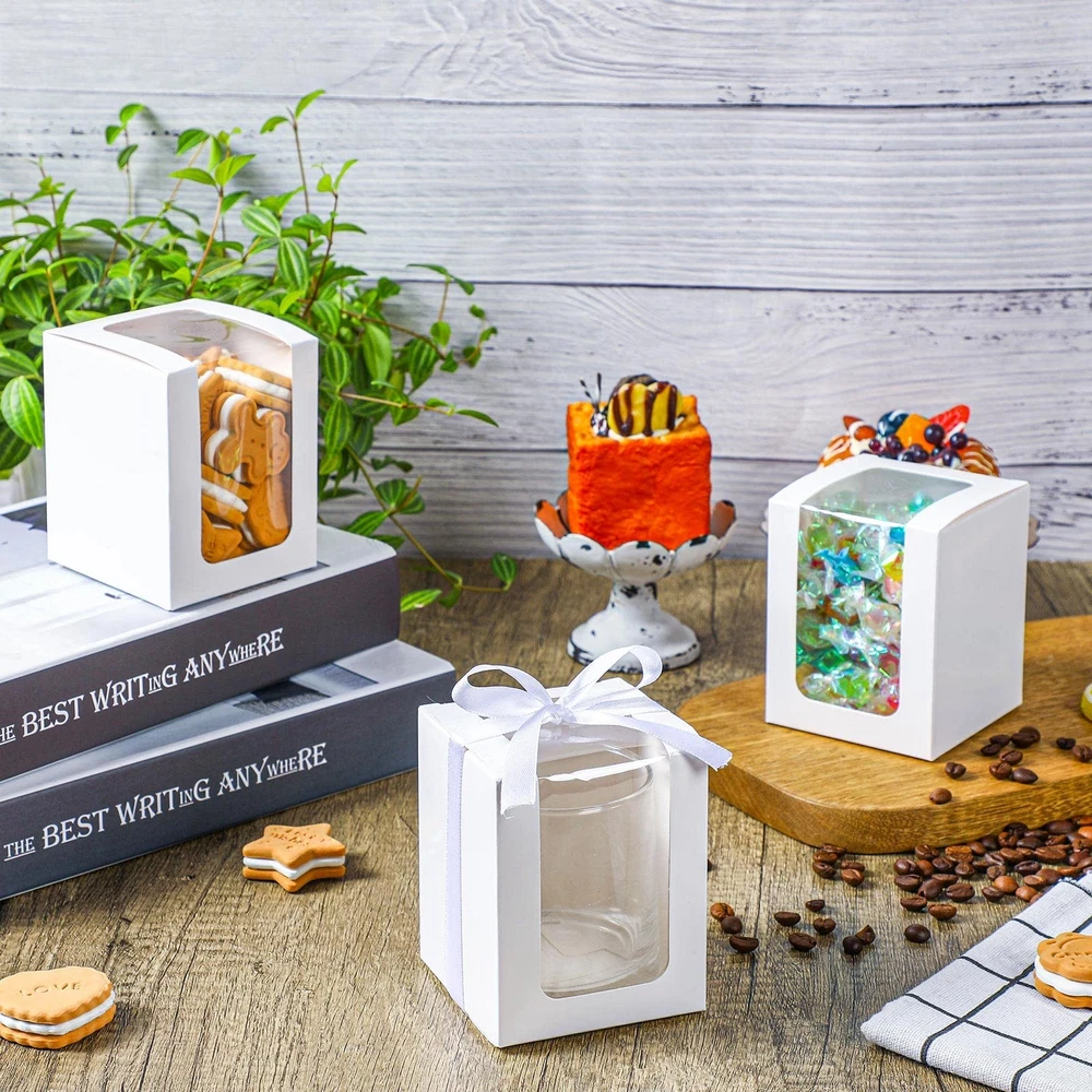 Features: Clear window design: These gift boxes for glasses are designed with a transparent window, making it easy to see through what's in the box. With this window, you can also display your baked goods while putting them in the boxes. Multiple functions: This wine glass box for gift can be not only applied for wrapping wine glass, but also nice for holding bread, cupcake, candy and more, your friend will be happy to receive this beautiful gift. Specifications: Material: cardboard, PVC Color: white Size: approx. 3.94 x 3.15 x 3.15 inches/ 10 x 8 x 8 cm Package includes: 50 x White favor boxes 3 Rolls of white ribbon Notes: Manual measurement, please allow slight errors on size. The color may exist a slight difference due to different screen displays. Boxes only, wine glass is not included in the package. Winding risk may exist, please keep away from little kids. Wine Glass Gift Boxes Bulk: you will receive 50 pieces of wine glass boxes equipped with 7 rolls of rope, sufficient quantity can meet your daily packaging and decoration demands Appropriate Size: each stemless wine glass gift box measures approx. 3.94 x 3.15 x 3.15 inches/ 10 x 8 x 8 cm, suitable for holding 9 oz stemless wine glass, these cake boxes are elegant and delicate Safety Materials: these wine glass boxes are made of cardboard material with see through PVC window, safe and reliable; The equipped ribbon can be trimmed into suitable size, convenient to use Exquisite Party Decor: you can use these white favor boxes to display wine glass, cupcake, candies, candles, balls, crafts and more, adding an elegant atmosphere to your party; Note: boxes only, wine glass is not included in the package Wide Range of Applications: these stemless wine glass boxes can be applied for various purposes, suitable as gift boxes for holiday gifts, also nice for weddings, birthdays, parties, bridal showers and other festive celebrations, which can enhance the festive atmosphere