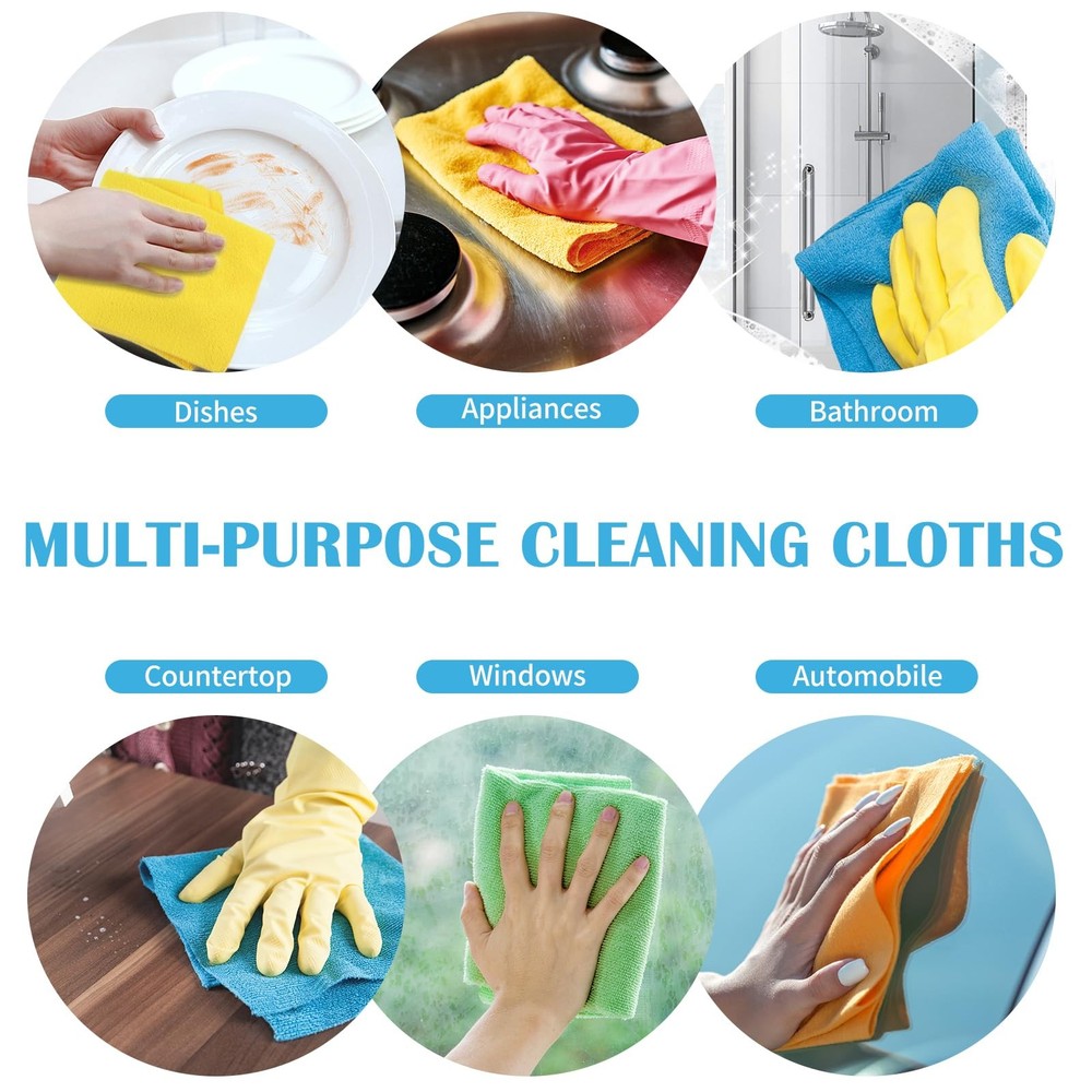 50-Pack Multicolor Microfiber Cleaning Cloths for Dusting & Absorbent Cleaning