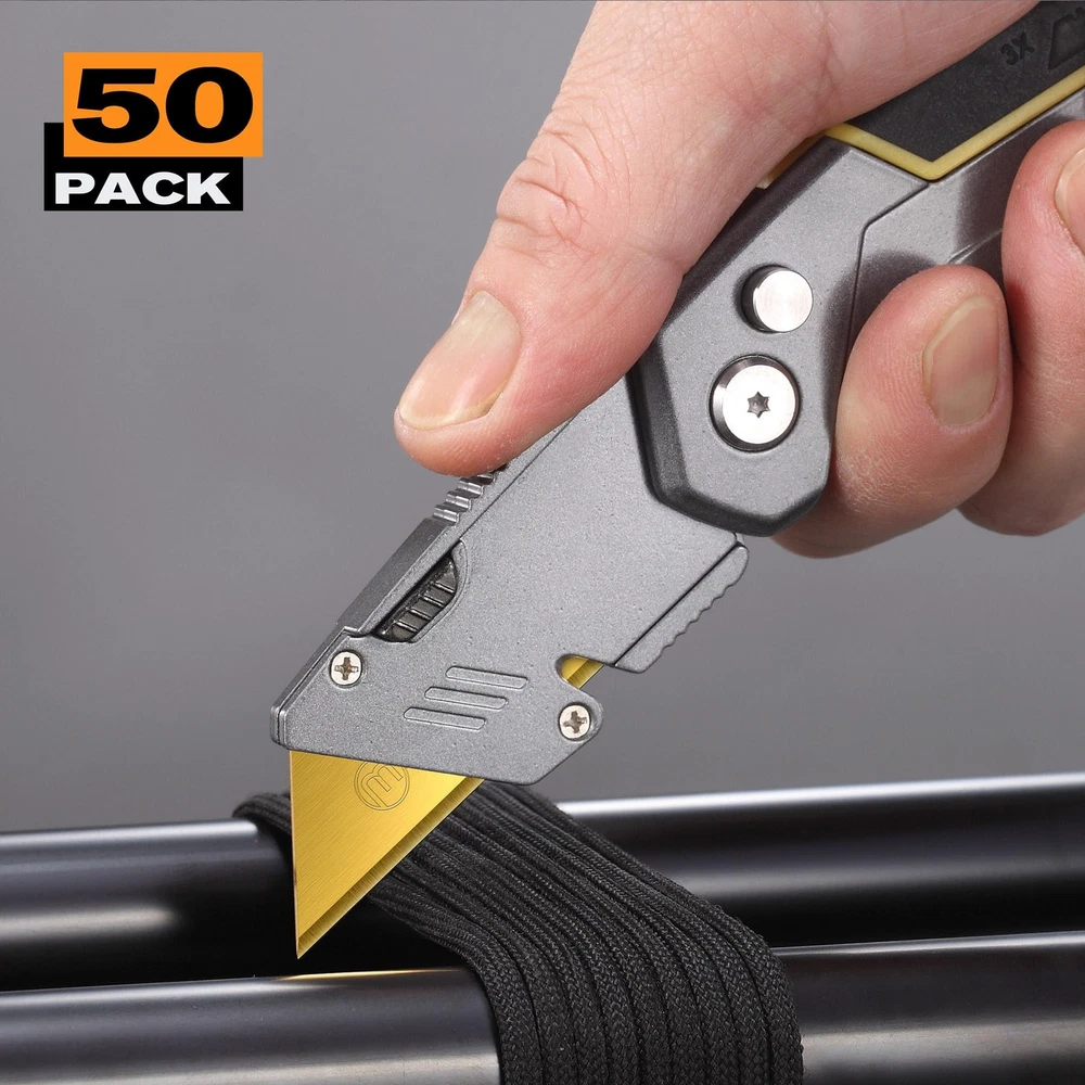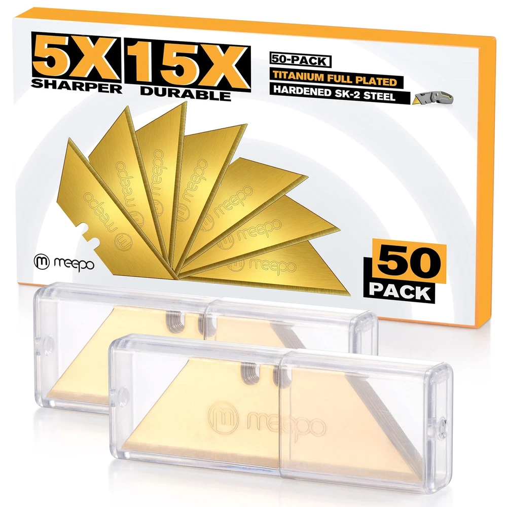 50-Pack Utility Knife Blades, Titanium Fully Plated, Durable SK-2 Razor Blades for Utility Knife Box Cutter, Never Rust, Extra Durable Made from high strength SK2 steel with titanium fully plated for superior durability and long-lasting sharpness 5X sharper and 15X durable than normal blades. Rust-resistant design for longevity and reliability Each 10-piece blades storaged in hard transparent plastic case Totally 50-pack utiity knife blades provide a long-lasting supply for all your cutting needs Perfect for sharing with coworkers, friends, or family members. And with 50 blades per box, you'll have plenty of blades to last you for multiple projects, no matter what your needs. Upgrade your cutting tool game today with Utility Knife Blades Shipping We offer FREE shipping on all orders! We ship within Three business days of payment, usually sooner. We use a selection of shipping services such as UPS, FedEx, USPS etc. We only ship to the lower 48 states, no APO/FPO addresses or PO Boxes allowed. Local pickups and combined shipping options are not provided at this time. Return You can return a product for up to 30 days from the date you purchased it. Any product you return must be in the same condition you received it and in the original packaging. Please keep the receipt. Payment We accept payment by any of the following methods: PayPal Please pay as soon as possible after winning an auction, as that will allow us to post your item to you sooner! Feedback Customer satisfaction is very important to us. If you have any problem with your order, please contact us and we will do our best to make you satisfied. Contact Us If you have any queries, please contact us via ebay. We usually respond within 24 hours on weekdays. Please visit our eBay store to check out other items for sale! Thank you for shopping at our store.