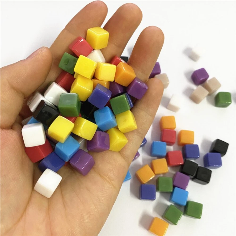 Material: Plastic Specification: 8*8*8MM Color:As picture(Some pieces was not smooth on the corner,if you can accept,pls order for it,thanks!) Package include:50 Pcs Cube Note: 1.Please allow 0.1-0.3mm error due to manual measurement. 2.Due to the difference between different Monitors, the picture may not reflect the actual color of the article.
