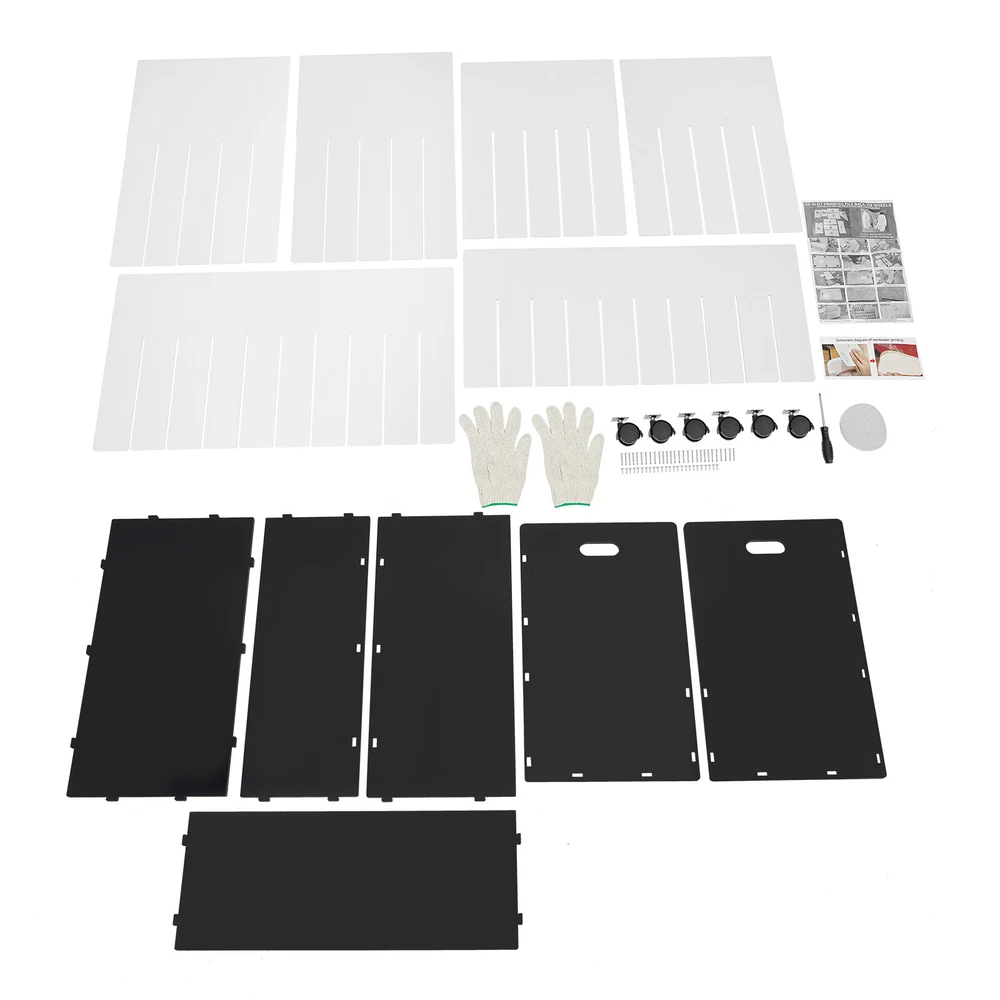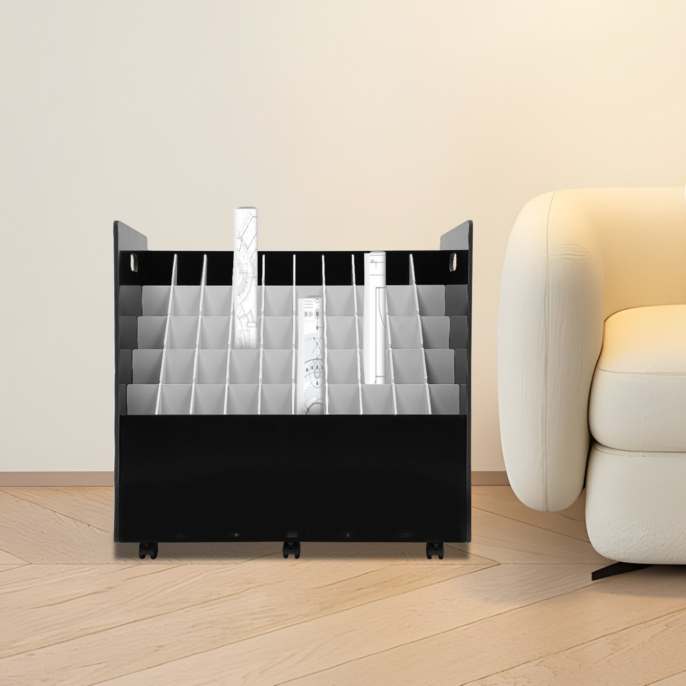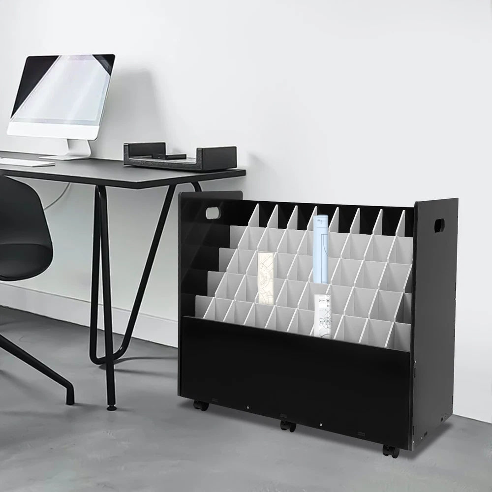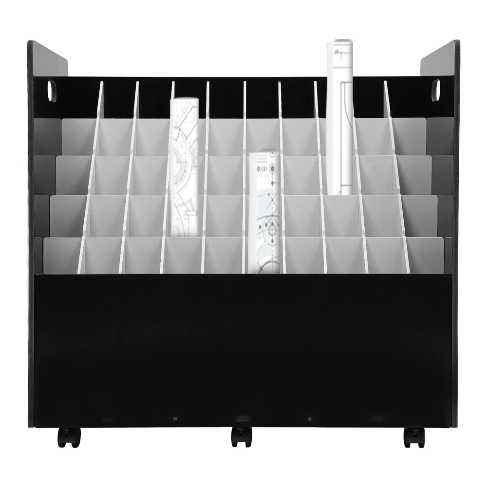 50-slot Blueprint Organizer Roll File Storage Holder Movable Roll File Cart Description Our 50-slot roll file organizer is crafted from high-quality materials, it features 50 slots of different depths to neatly arrange your workpieces or photography equipment into different categories. It keeps your studio tidy while having easy access to your items. Come on and take it to enjoy a tidier environment today. Key Features Build to Last: It is made of high-quality PVC and rubber through carving and co-extrusion technology, which is sturdy, not easy to deform or collapse, and has a long service life. Large Capacity: The size of 30*15.75*28.5 inches provides 50 slots that can accommodate paper rolls with a maximum diameter of 2.75in, allowing you to fit a large number of drawings, plans, newspapers, or photography equipment. DIY Installation : Dividers are removable. You can also use less of the dividers to create partitions more applicable to your desired use. Excellent Load-Bearing Capacity: The stable structure and thick board give this product a load-bearing capacity of up to 66.14 pounds, allowing you to store equipment with confidence. Easy Clean-Up : With its smooth surface and simple structure, you can easily use a soft cloth to wipe it clean. Neat Storage: 5 tiers of slots with different depths(9.65in/12.8in/15.75in/18.7in/21.65in) allow you to organize rolled-up documents, film tubes, and equipment of different lengths, allowing for quicker access. Flexible Movement: The 6 lockable universal wheels allow you to easily move it to the desired location and come to a stable stop, making it easier to use. Easy Assembly: This product has a simple structure and includes complete components and an installation diagram, allowing you to easily assemble it. Details Practical Handles: They facilitate easy moving. Two Raised Sides: The design of raised sides ensures that the work or equipment placed in the slots will not tilt or fall off. Application This product can be used in study rooms, studios, offices, print shops, factories, libraries, reading rooms, newspaper rooms, waiting rooms, meeting rooms, photography studios, and photography equipment stores to store or place drawings, newspapers, files, maps, wrapping papers, construction plans, prints, photography equipment, etc. Specification Material: PVC, Rubber Process: Carving, Co-extruding Color: Black Style: Modern Assembly Required: Yes Mount Type: Freestanding Wheels Type: 6 * Lockable Universal Wheels Number of Slots: 50 Number of Tiers: 5 Max. Total Load-bearing Capacity: 30kg/66.14lbs Each Tier Depth: 24.5cm/9.65in, 32.5cm/12.8in, 40cm/15.75in, 47.5cm/18.7in, 55cm/21.65in Applicable Paper Roll Max. Diameter: 6.99cm/2.75in Product Size: 76.2*40*72.4cm/30*15.75*28.5in Package Size: 85*42*10cm/33.46*16.54*3.94in Gross Weight: 15kg/33.07lbs Net Weight: 14kg/30.86lbs Package Included 1* Roll File Organizer 6 * Universal Wheels 1* Polishing Pad 1* Polishing Instruction Diagram 1* Installation Diagram 1 Pair * Gloves 1*Screwdriver Other Accessories for Assembly Notes Please carefully read the installation diagram and assemble this product according to it. Please wear gloves during assembly. Please allow the slight color difference caused by the shooting light and 1-3cm error due to manual measurement, and make sure you do not mind before ordering. Payment Delivery details Terms of sales About us Contact us Payment We accept ebay payment 。 Fees such as import duties, taxes are not included in the item price or shipping costs. These charges are the buyer's responsibility. Delivery details Shipping: 2-9 working days to: USA Terms of sales We maintain high standards of excellence and strive for hundred percent customer satisfaction. Feedback is very important to us. We hope that you contact us immediately before you give neutral or negative feedback, so that we can address your concerns. It is impossible to address issues if we do not know about them! About us Your satis faction is our ultimate goal. We work hard to earn your trust and future business. Our certified technicians have tested each item before shipping. The unit comes with 1 year limited warranty on all manufacturing defects. a) If you receive a defective item, you may return it or ask for a discount. Please contact us within 14 days after you receive the package. b) What you returned must be intact and in its original packaging as re? u. Customer is responsible for shipping costs of the returned item. c) We will cover the cost of shipping back t with the shipping rate indicated in the registration page. We will send you a new unit or refund the full payment you paid. Thank you. Contact us Business Hour Business Hour: Monday To Friday: 8:30 AM to 5:00 PM (Beijing China time) Due to time zones, our reply to your questions may not be immediately. But within above working time, we will reply your email within 24 hours. If it's non-workdays, please kindly be patient and wait till Monday. Please contact us with ebay message. Please feel free to contact us if you have any questions. Monday To Friday: 8:30 AM to 5:00 PM (Beijing China time) Due to time zones, our reply to your questions may not be immediately. But within above working time, we will reply your email within 24 hours. If it's non-workdays, please kindly be patient and wait till Monday. Please contact us with ebay message. Please feel free to contact us if you have any questions.