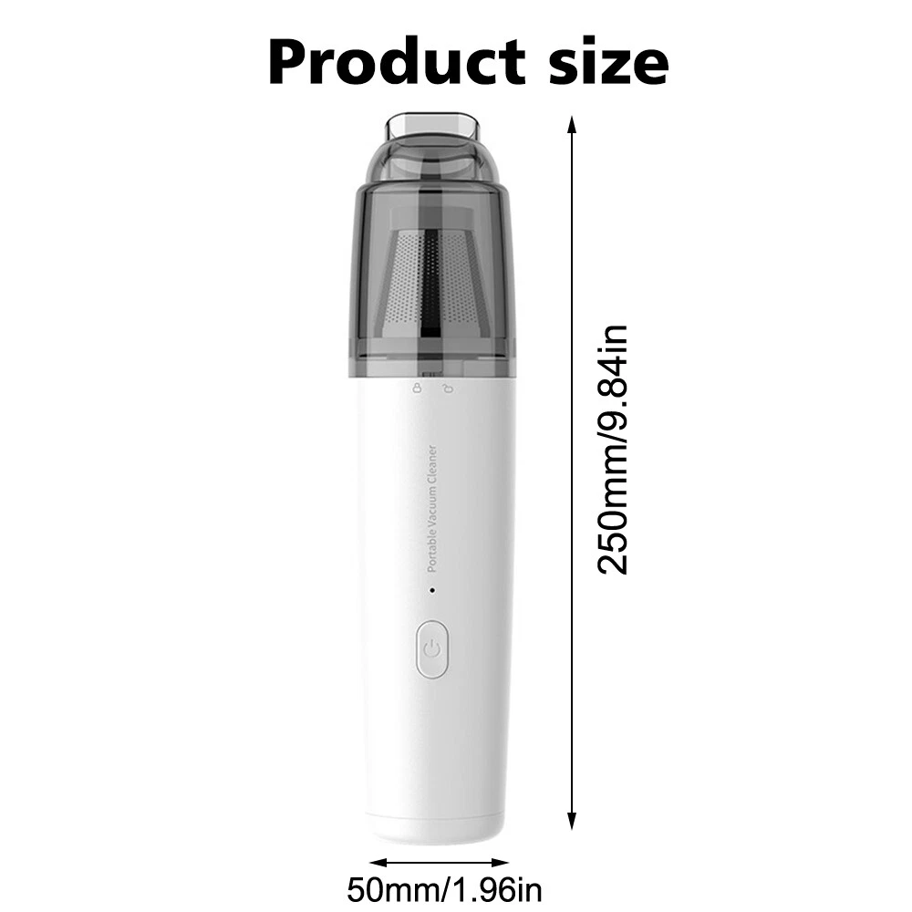 Features: 1. Lightweight and portable: the body is only about 0.3kg, lighter than a bottle of mineral water, easy to carry and use. 2. Powerful and versatile: with two suction modes to meet different cleaning needs. 3. Functionality: Equipped with a variety of suction heads, suitable for household furniture, sofas, carpets and other hard-to-reach places to clean. 4. Wireless and flexible: lithium battery power supply, get rid of the power cord, Type - C charging interface, high compatibility, convenient charging. 5. Low noise and worry-free: operating noise level greater than 77 dB relatively low, little interference, and simple maintenance of the battery and components, regular charging, cleaning can maintain good performance. Specification: Product colour: white Product material: ABS, durable and lightweight plastic material. Rated voltage: 7.4V Battery capacity: 1800 mAh Charging method: USB interface (Type-C) Rated power: 50w Using temperature: -20℃~ +50℃ USB cable length: about 1 metre Product size: 25*5*5cm Product weight: 320g Package List: 1×Vacuum cleaner 1×Filter 1×Instruction manual 1×usb charging cable 1×Vacuum hose On Feb 7, 2025 at 00:16:25 PST, seller added the following information: