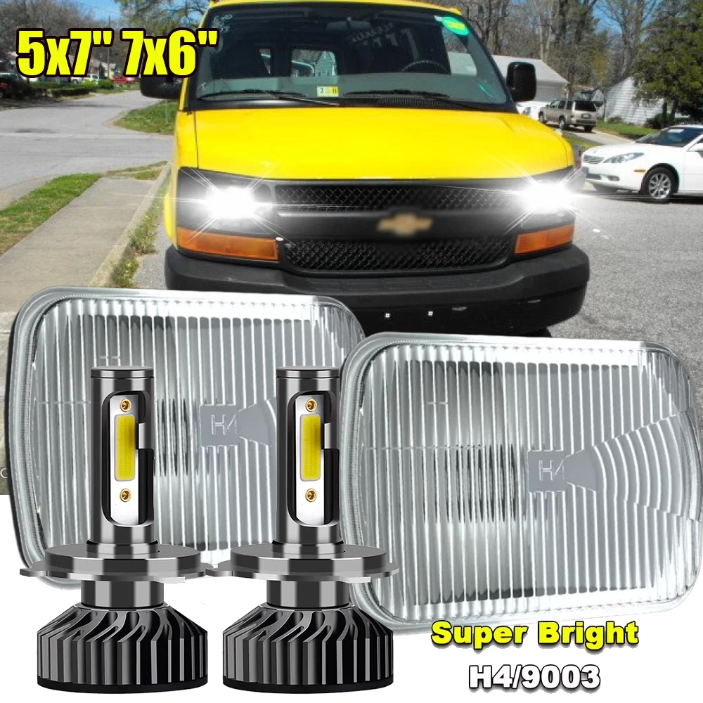50W For Chevy Express Cargo Van 1500 2500 3500 Pair 7x6 5x7 LED Headlights Hi/Lo