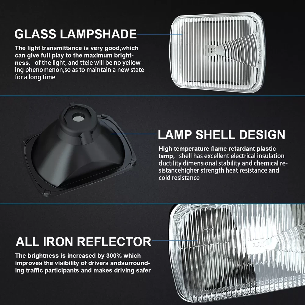 Features: Color temperature: 6000K Working voltage: DC 9V to 36V Moisture resistance rate: IP67 Beam pattern: High beam/Low beam + DRL Plug: Factory H4 plug with hi/lo beam function Average Lifespan more than 50,000 hours of usage LED wattage: 100W Size(Single Work Light): 7"" (length) * 6"" (width) * 3"" (depth) Light output: 6000LM/high beam,4500LM/low beam Made by high quality black aluminum housing with PMMA lens Professional installation is high recommended Vehicle Fitment Each piece comes with 15-LED sealed beam light and toughen PMMA lens with H4 plug Fit for most vehicle with sealed beam headlights(H6014 H6052 H6054 H5054 H6054LL 69822 6052 6053) Package Included: 2 x 7x6 inch headlight housing 2xH4 led headlight bulbs Applications: For Jeep: For Jeep Models with 5"x7"(7"x6" ) stock headlights. For 1987- 1995 Jeep Wrangler YJ For 1984 - 2001 Jeep Cherokee XJ For 1986 - 1992 Jeep Comanche MJ For Jeep Grand Wagoneer For Dodge: For 1988-1990 Dodge Ramcharger For 1990-1993 Dodge Ram Pickup For 1990-1993 Dodge W250 For 1986-1993 Dodge Van For 1985-1987 Chevy Silverado For Dodge Ram 50, For Dodge Omni, For Dodge Colt, For Dodge Caravan, For Dodge Aries Chevrolet Tahoe S10 Blazer S10 K2500 Suburban K1500 Suburban Express For Chevy: For Chevrolet Tahoe For Chevrolet S10 Blazer, For Chevrolet S10 For Chevrolet K2500 Suburban, For Chevrolet K1500 Suburban For Chevrolet Express 3500, For Chevrolet Express 2500, For Chevrolet Express 1500 For Chevrolet C2500 Suburban, For Chevrolet C1500 Suburban Corvette, For Colorado For GMC: For GMC Models with 5"x7"(7"x6" ) stock headlights For GMC Savana 3500 ( 1998-2002, 2004, 2007, 2009-2012) For GMC Savana 2500 ( 1998-2001, 2004, 2006, 2008, 2010-2012 ) For GMC Savana 1500 ( 1998-2001, 2003, 2005, 2007, 2009-2012 ) For GMC Safari ( 1998-2002, 2004, 2005 ) For GMC K3500 ( 1997-2000 ) For GMC K2500 Suburban ( 1997-1999 ) For GMC K2500 ( 1997-2000 ) For GMC K1500 Suburban ( 1997-1999 ) For GMC K1500 ( 1997-1999 ) For GMC C2500 Suburban ( 1997-1999 ) For GMC C2500 ( 1997-2000 ) For GMC C1500 Suburban ( 1997-1999 ) For GMC C1500 ( 1997-1999 ) For Ford: For Ford Models with 5"x7"(7"x6" ) stock headlight For Ford F 550 Super Duty, For Ford F 450 Super Duty, For Ford F 350 Super Duty, For Ford F 250 Super Duty, For Ford E 350 Econoline,For Ford E250 Econoline, For Ford For E-150 Club Wagon For Honda: For Honda Prelude, For Honda Accord