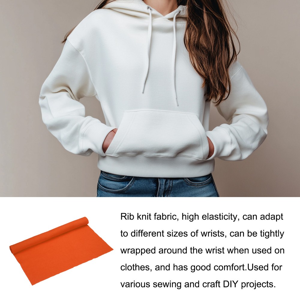 50cm x 1.2m Elastic Cuffs Ribbed Trim Cotton Fabric Knitted Stretch Band Orange