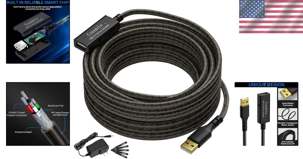 Braided 50 Feet USB 2.0 Male to Female Extension with Signal Stability Features < class="slides"> ‹ › ‹ › ‹ › ‹ › ‹ › ‹ › ‹ › ‹ › ‹ › 50 Feet USB 2.0 Male to Female Extension Cable Experience unparalleled connectivity with our Braided 50 Feet USB 2.0 Male to Female Extension Cable. Designed with Signal Stability features, this cable ensures that you can extend your USB connections with ease and reliability. Key Features: Power Supply Included: Comes with an AC power supply to boost power for high-demand devices, ensuring performance even over long distances. Versatile Length Options: Available in lengths from 50ft to 150ft, offering the flexibility to meet your needs at home or in the office. Stable Data Transmission: Achieve maximum data speeds of up to 480mbps with our advanced chipset signal amplifier for reliable, uninterrupted use. Innovative Design: Constructed with high-quality 22AWG tinned copper wire for superior resistance against corrosion and oxidation, combined with a reinforced strain relief design. Comprehensive Compatibility: Works seamlessly with printers, game consoles, scanners, cameras, keyboards, mice, hard drives, flash drives, and more. Why Choose Our USB Extension Cable? In today's fast-paced digital world, staying connected is more crucial than ever. This USB extension cable is fine-tuned for optimal performance, making it the ideal solution for extending connections without sacrificing signal quality. The LED light indicator keeps you informed about the power status, providing peace of mind as you work. With a worry-free two- and responsive customer service ready to assist you, you can trust that our 50 Feet USB 2.0 Male to Female Extension Cable will provide not only functionality but a hassle-free experience. Ready to elevate your connectivity? Order your USB extension cable today and enjoy seamless connections across your devices! Shipping Free & Fast Shipping - We offer free shipping to most of the USA with a normal delivery time of 3-7 days. However, due to the current situation, additional delivery time (up to 3 weeks) may be required for some items. Alternative Carriers - We may use alternative carriers (e.g. USPS, FedEx, UPS, etc.) to ensure your package arrives safely and on time. Due to the use of multiple carriers, we are unable to provide a tracking number automatically. Handling Time - Orders are processed and shipped within 1-2 business days of receiving cleared payment. Shipping Restrictions - Shipping to Alaska, Hawaii, Puerto Rico, Guam, and other US territories may incur shipping charges or delivery restrictions. Please contact us before ordering, or your order can be refunded/cancelled. State Restrictions - There may be restrictions based on your state of purchase. For example, certain items may not be shipped to California due to state regulations. Contact for Tracking Updates - If you require tracking updates or have any concerns about the delivery of your order, please feel free to contact us, and we will be happy to assist you. Return 30-Day Hassle-Free Returns - We want you to be completely satisfied with your purchase. If you are not, you can return the item within 30 days of receiving it for a full refund or exchange. Easy Return Process - To start a return, simply contact us and we will provide you with a prepaid return shipping label and detailed instructions. Restocking Fee - There are no restocking fees for returns. However, the buyer is responsible for return shipping costs if the return is not due to a seller's error. Refund Processing Time - Refunds will be processed within 5 business days of receiving the returned item in its condition. Payment We accept all major credit cards, PayPal, and Apple Pay for your convenience. Your payment information is secure and encrypted to ensure a safe and seamless transaction. Please complete your payment within 3 days of purchase to avoid any delays in shipping. Feedback Your feedback is extremely important to us. We strive to provide the best products and customer service possible. If you are satisfied with your purchase, please take a moment to leave us a positive review. If you have any concerns or issues with your order, please contact us before leaving negative feedback. We are committed to resolving any problems and ensuring your satisfaction. Contact Us If you have any questions or concerns, please feel free to out to our customer support team. You can contact us through the eBay messaging system. We are available Monday to Friday, 9:00 am to 5:00 pm EST, and we will do our best to respond to your inquiry within 24 hours. Buy it now and enjoy a pleasant shopping experience! Unit Quantity: 50 ft Connector A: USB 2.0,USB Connector B: USB Standard Type A Female Features: Powered,Data Transfer,Braided Compatible Model: Universal,laptop,pc,television,printer,game console,scanner,camera,keyboard,mouse,Hard drive,flash drive Type: Extension Cable Connection Split/Duplication: 1:1 Output Voltage: 5 V Unit Type: ft Color: Black