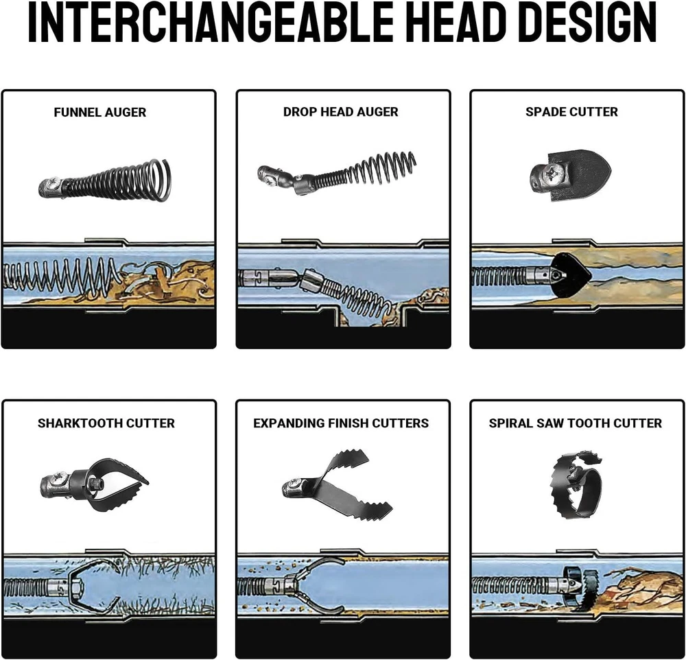 50ft x 5/16in Drain Cleaner with 6 Knives, Drain Auger Cleaner Sewer Snake… Professional-Grade Drain Cleaner: Designed for efficient unblocking, our drain cleaner features a flexible air-activated foot switch and rotation direction switch for professional plumbers. It is widely used in sinks, toilets, and floor drains, allowing you to handle drain cleaning tasks and save on plumber fees. Economical & Safe: Our electric drain cleaning machine is capable of passing through complex pipes and cleaning drains from 3/4 to 3 inches in diameter. It is suitable for commercial and residential applications, versatile enough to be used for sinks, showers, and outdoor drains. The built-in GFCI ensures operator safety. 50Ft Anti-twist Wire Core Cable: Made of high-quality heat-treated steel mn65, our 50ft cable resists breakage, tangling, kinking, corrosion, and is tough enough to navigate multiple 90-degree turns. Durable & Convenient: The closed cable drum design keeps the machine clean while preventing the cable from running out and becoming tangled. Soft rubber is added to the handrail for added convenience during transfer. 6 Cutters & After-service: We provide a pair of gloves and 6 different alternative cutters with our product, making it versatile for various clog removal tasks. For any questions or concerns, please reach out to our customer service team at PIONEERWORKS. Payment Delivery details Terms of sales About us Contact us Payment We accept payment either via PayPal or any of the following credit cards; Visa, MasterCard, Discover, and American Express. Delivery details (1) Usually 1 - 2 business days for handling to ship this item once payment has been received. (2) Usually takes 2-8 business days for the delivery. (Most items are delivered within 2-5 business days.) (3) Shipping is within the continental 48 U.S. States only (4) No international shipping (5) No shipping to Alaska, Hawaii, Puerto Rico, Guam, or the Virgin Islands (6) No shipping to Canada or Mexico (7) No shipping to APO/FPO/DPO (8) We do not offer combined shipping services (9) If your shipping address is different than your Paypal address, please add the shipping address to your authorized addresses in your Paypal account. (10 )We can only ship to an authorized Paypal address. We do not accept email to change shipping address. Terms of sales Your satisfaction is our Guarantee! If you are not completely satisfied with the product that you received, simply contact us either through the eBay messaging system and we will take care of the rest. Our products are covered by a 30 day return/exchange warranty. Our professional qualified staff will attempt to the resolve the issue in the possible case of a connect or compatibility issue. If the issue cannot be resolved we will either have a replacement shipped out to you or we can issue a refund back to your account. We will make your experience as simple and satisfying as possible. About us chuluwanglkj is a brand new store but we are one of North America’s top online suppliers of specialized, high-quality aftermarket online retailers and suppliers, committed to developing new markets. We primarily offers tool sets, auto parts, home goods, etc.. With over 20 years of product selection and manufacturing experience, we delivers unparalleled quality, value, service and satisfaction. Our highly-trained, professional staff offer in-depth knowledge and personalized assistance for customers worldwide. Providing our customers with a simple, hassle-free experience with best-in-class customer service is more than a goal. It is our foundation. We know your trust and satisfaction can only be earned one transaction at a time. Contact us Any problem please rest assure to contact us by eBay message first. We will reply you as soon as we can. We will deal with it within 24hs on working days. Brand MERXENG MPN not applicable Tool Type Drum Machine Part Number ‎50 Ft x 5/16 In Item Weight ‎32.7 pounds Product Dimensions ‎18.1 x 16.93 x 12.99 inches Unit Quantity 1