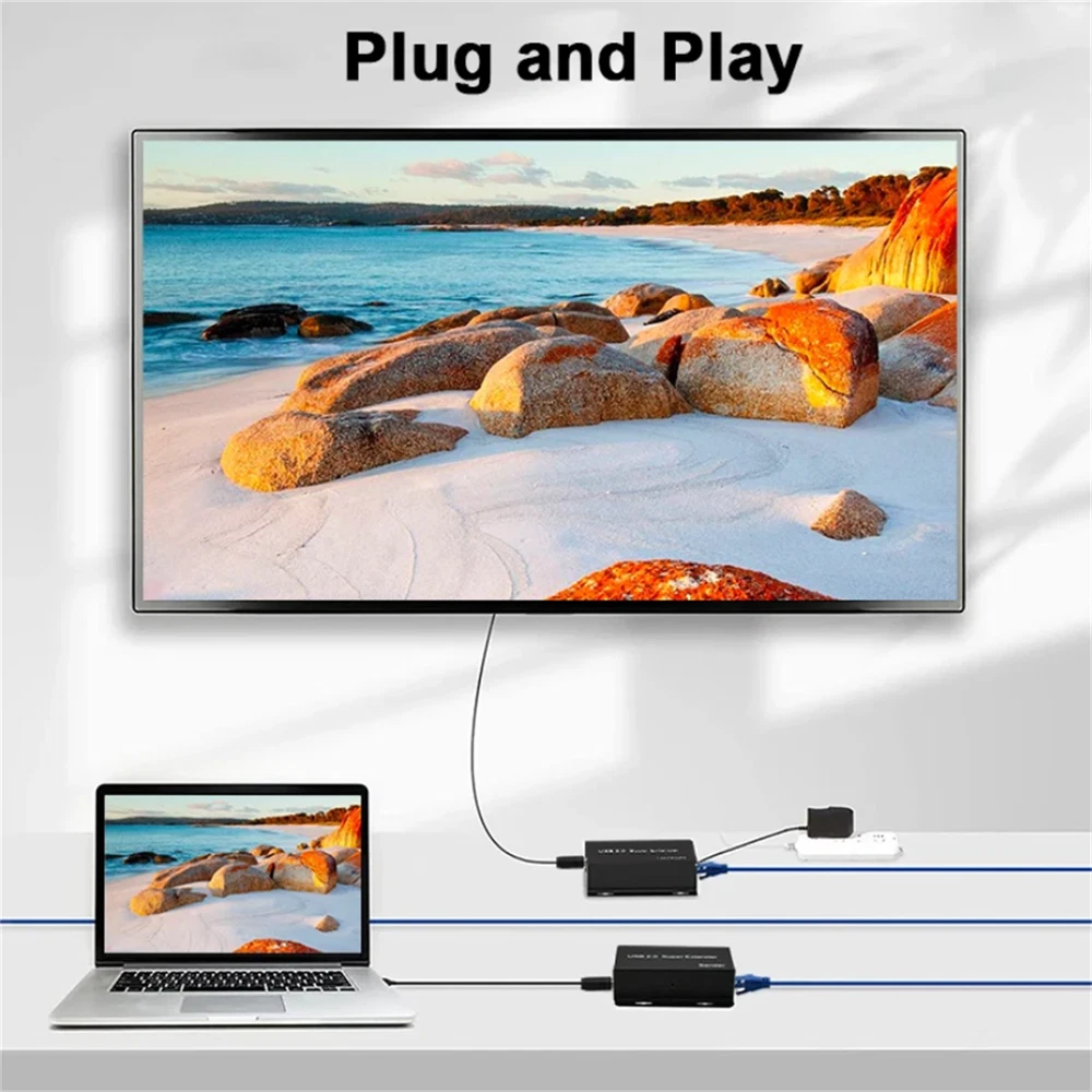 1. This USB 2.0 extender is a game-changer! It effortlessly extends my devices up to 50m over Cat5e/6 cables without lag. The 4-port hub works flawlessly with my keyboard, mouse, and webcam—no more messy cables cluttering my desk. Super easy setup on Windows, and the speed stays solid even at a distance. Perfect for home offices or setups needing extra reach. Highly recommend!