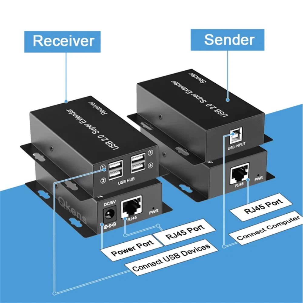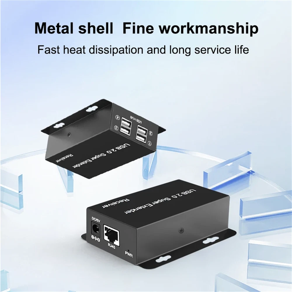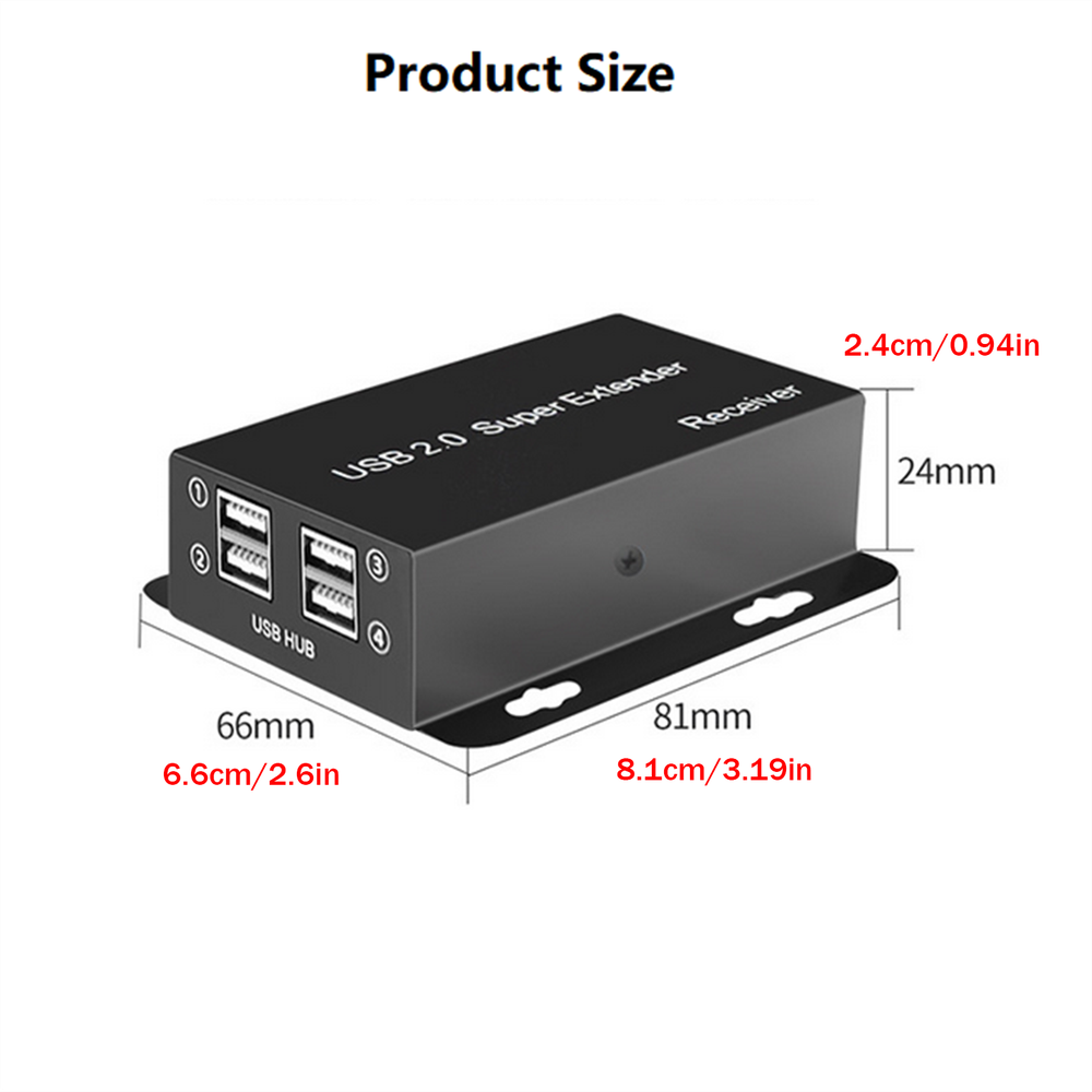 Product Description 50m USB 2.0 Extender Over Rj45 Ethernet Cat5e Cat6 Cable For Laptop PC U Flash Disk Camera Keyboard Mouse Webcam Printer Scanner Feature: Brand new and high quality. This USB extender extends the connected signal up to 50m by ethernet cable cat5e/6/7. With 4 USB2.0 ports, this is also a USB hub while connecting long-distance signals. Supports up to 480Mbps(Theoretical speed), easy to access USB 2.0 transmission equipment. Compatible with multiple operating systems: For Windows, For Mac, For Linux etc. Support PC, webcam, printer, scanner, USB Disk, keyboard, mouse and more. Plug and play, no additional driver is needed, it will be installed automatically when connected. Specifications: Product Name: USB2.0 Network Cable Extender Product feature: POC unilateral power supply USB version: USB2.0 Compatible with USB 1.1 Shell material: Iron shell Power supply DC: 5V 1000mA Product size: 66 * 81 * 24mm Packing Content: 1x USB transmitter 1x USB receiver 1x USB-B to USB-A cable 1x DC5V1A Power adapter 1x User manual Shipping Returns Contact Us Payment 1. Items sent from US warehouse. 2.Receiving time = Processing time + Shipping time 3. Processing Time: Around 1-2 business Days 4. Shipping Time: 3-5 business day it may have a little delay during some holiday (such as Christmas),any problem ,please feel free to contact 1. 30 days warranty from the purchased date. Please contact us via email before returning the defective item. 2.Our warranty does not extended to any product that are physically damaged or that are not under normal operating conditions as result of misuse or improper installation on the buyer/user's part. 3.Return items should include the original packaging and all accessories. buyers MUST contact us for the returning address. 4.In all cases, buyers pay shipping fees at their own cost to return products for exchange or refund. We will be responsible for the postage of replacements. Refund will be made upon receipt of the returned item. Pls contact us if you have any problems,we will try our best to solve for you We accept all verified payment from eBay. Shipping 1. Items sent from US warehouse. 2.Receiving time = Processing time + Shipping time 3. Processing Time: Around 1-2 business Days 4. Shipping Time: 3-5 business day it may have a little delay during some holiday (such as Christmas),any problem ,please feel free to contact Returns 1. 30 days warranty from the purchased date. Please contact us via email before returning the defective item. 2.Our warranty does not extended to any product that are physically damaged or that are not under normal operating conditions as result of misuse or improper installation on the buyer/user's part. 3.Return items should include the original packaging and all accessories. buyers MUST contact us for the returning address. 4.In all cases, buyers pay shipping fees at their own cost to return products for exchange or refund. We will be responsible for the postage of replacements. Refund will be made upon receipt of the returned item. Contact Us Pls contact us if you have any problems,we will try our best to solve for you Payment We accept all verified payment from eBay. powered by