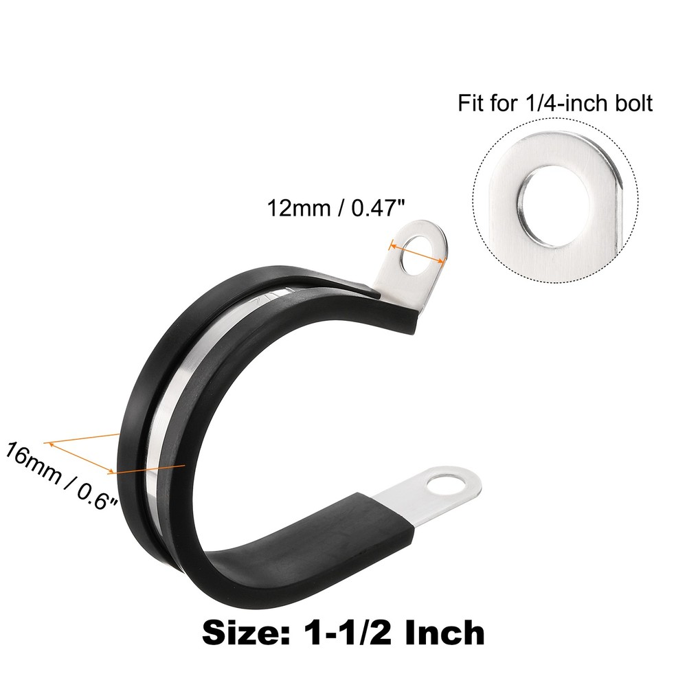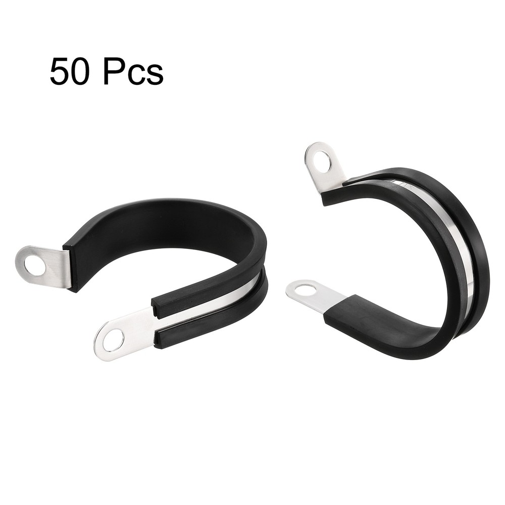 50pcs 1-1/2 Inch Stainless Steel Cable Clamps with Rubber Cushion Insulation