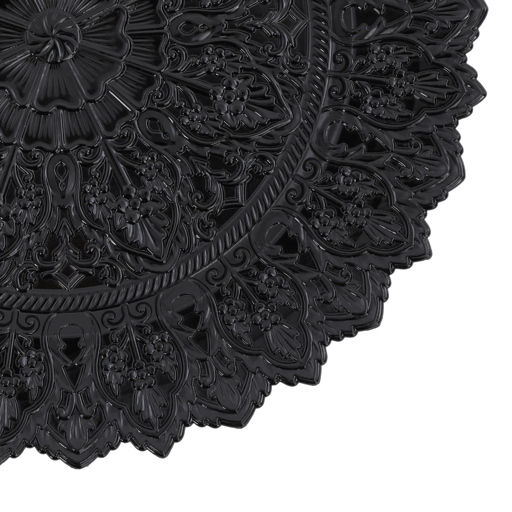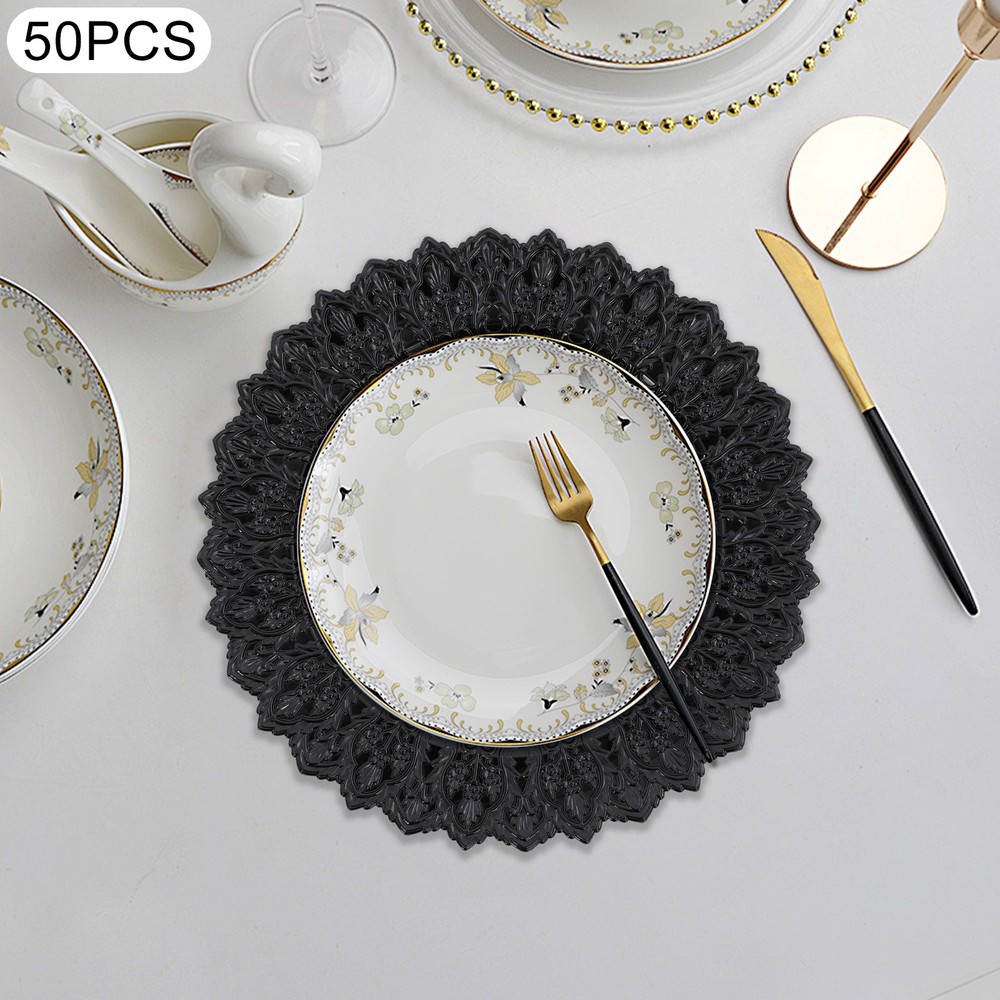 Specification Color: Black Shape: Round Style: Vintage Material: PP Process: Spray Painting Mounting Type: Tabletop Number of Pieces: 50 Each Product Diameter: 33cm/13in Package Size: 36*36*29cm/14.17*14.17*11.42in Gross Weight: 16kg/35.27lbs Net Weight: 15.2kg/33.51lbs Package Included 50* Charger Plates 50pcs 13" Vintage Antique Charger Plates Wedding Party Table Decor for Banquets Description Description Our charger plates bring a refined touch to most dining occasions while serving as a stunning backdrop for your culinary masterpieces. With their exquisite design and craftsmanship, they elevate table settings, creating a memorable impression for both formal events and intimate family gatherings. Key Features Crafted for Endurance: Crafted from premiu m PP wit h a spray painting process, this product withstands wear, cracks, and fading for long-term use. Elegant & Artistic: The round shape, attractive color, and exquisite texture patterns give this piece a classic, elegant look that enhances your table setting and creates a delightful dining experience. Reasonable Size: With a diameter of 13 inches, each piece ideally accommodates salad bowls and soup bowls (not included) while adding a stylish, functional touch to your table setting. Adequate Quantity: With 50 plates in a set, our package is ideal for both home gatherings and large-scale events, making it a versatile choice for hotels, restaurants, and other commercial settings. Space-Saving Storage: These stackable plates offer convenient storage, neatly fitting into your cabinet while minimizing space usage. Details Ingenious Sunken Bottom: It offers a secure spot for salad bowls, soup bowls, and main dishes(not included), helping to prevent spills and keep your table tidy. Sleek Edges: The smooth edges not only add to the product's aesthetic appeal but also ensure gentle care for your skin during use and cleaning. Application This product is suitable for parties, weddings, banquets, restaurants, hotels, camping, picnics, barbecues, or other events. Specification Color: Black Shape: Round Style: Vintage Material: PP Process: Spray Painting Mounting Type: Tabletop Number of Pieces: 50 Each Product Diameter: 33cm/13in Package Size: 36*36*29cm/14.17*14.17*11.42in Gross Weight: 16kg/35.27lbs Net Weight: 15.2kg/33.51lbs Package Included 50* Charger Plates Notes Please ensure that the size of this product is suitable for your needs before purchasing. Please note that this product cannot be directly used to hold food. Please note that this product has only undergone a spray painting treatment process on a single surface. Please ensure that you do not mind this before purchasing. Please allow the slight color difference caused by the shooting light and the 1-3 cm error due to manual measurement, and make sure you do not mind before ordering. Payment Delivery details Terms of sales About us Contact us Payment We accept ebay payment 。 Fees such as import duties, taxes are not included in the item price or shipping costs. These charges are the buyer's responsibility. Delivery details Shipping: 2-9 working days to: USA Terms of sales We maintain high standards of excellence and strive for hundred percent customer satisfaction. Feedback is very important to us. We hope that you contact us immediately before you give neutral or negative feedback, so that we can address your concerns. It is impossible to address issues if we do not know about them! About us Your satis faction is our ultimate goal. We work hard to earn your trust and future business. Our certified technicians have tested each item before shipping. The unit comes with 1 year limited warranty on all manufacturing defects. a) If you receive a defective item, you may return it or ask for a discount. Please contact us within 14 days after you receive the package. b) What you returned must be intact and in its original packaging as re? u. Customer is responsible for shipping costs of the returned item. c) We will cover the cost of shipping back t with the shipping rate indicated in the registration page. We will send you a new unit or refund the full payment you paid. Thank you. Contact us Business Hour Business Hour: Monday To Friday: 8:30 AM to 5:00 PM (Beijing China time) Due to time zones, our reply to your questions may not be immediately. But within above working time, we will reply your email within 24 hours. If it's non-workdays, please kindly be patient and wait till Monday. Please contact us with ebay message. Please feel free to contact us if you have any questions. Monday To Friday: 8:30 AM to 5:00 PM (Beijing China time) Due to time zones, our reply to your questions may not be immediately. But within above working time, we will reply your email within 24 hours. If it's non-workdays, please kindly be patient and wait till Monday. Please contact us with ebay message. Please feel free to contact us if you have any questions.