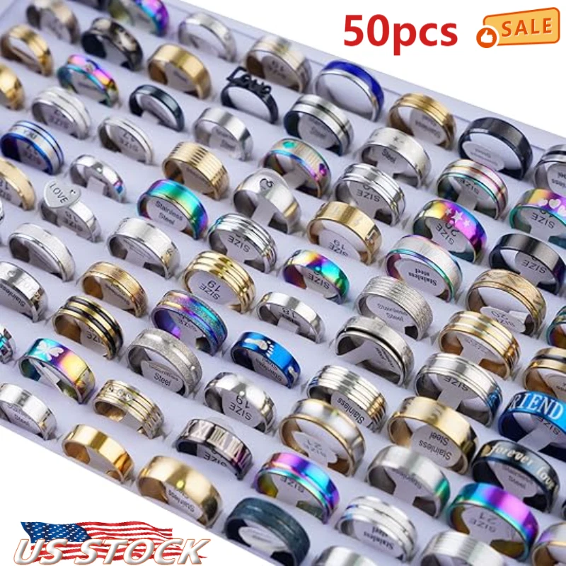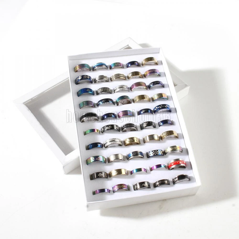 50pcs Bulk Lot Mixed STAINLESS STEEL Rings Men's Fashion Wedding Ring Wholesale