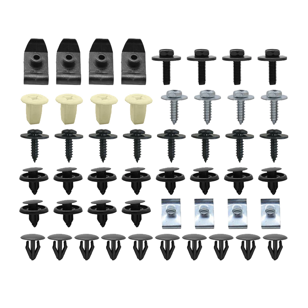 50pcs Car Engine Splash Shield Body Bolts Screw Nut Fender Bumper Clip Rivet Description: Ensure your vehicle's body parts are securely fastened with this comprehensive set of 50 high-quality bolts, screws, nuts, and clips. Ideal for replacing or upgrading your car's engine splash shield, fender, bumper, and other body components. Features: • Universal Fit: Suitable for a wide range of car models. • High-Quality Materials: Made from durable metal and plastic to withstand various conditions and provide long-lasting performance. • Complete Set: Includes bolts, screws, nuts, and clips, offering a complete solution for your vehicle's fastening needs. • Easy Installation: Designed for quick and easy installation, saving you time and effort. • Versatile Use: Perfect for engine splash shields, fenders, bumpers, and other body parts. Specifications: • Condition: New • Material: Metal and Plastic • Quantity: 50 pieces Package Includes: plastic and metal fasteners x50