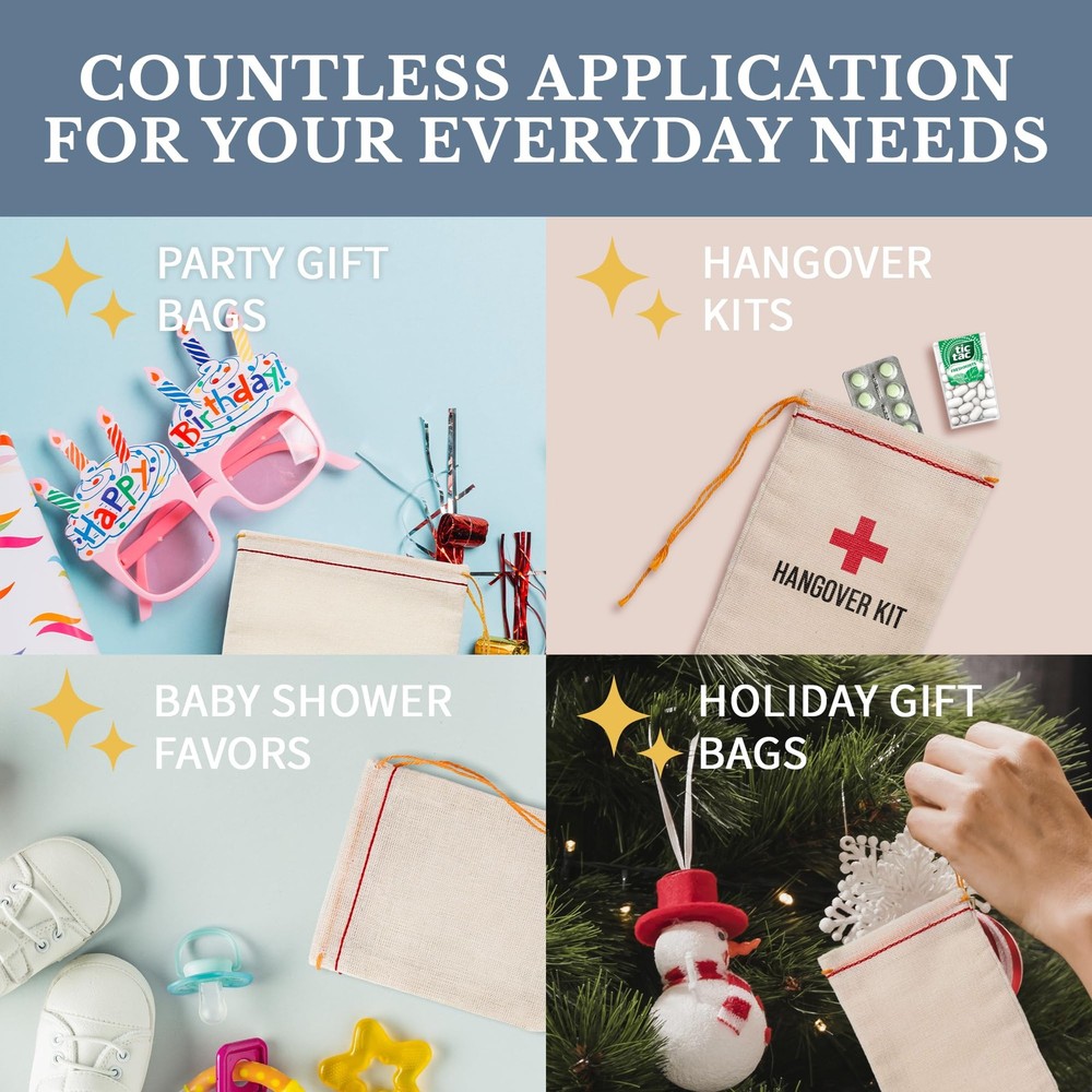 50pcs Small 3x4 Muslin Drawstring Bags - Reusable for Tea, Jewelry & Gifts