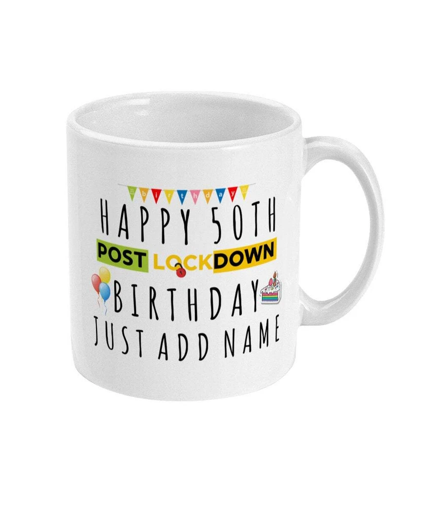 50th Birthday Gift Personalised 50th Birthday Mug Post Lockdown Birthday Fifty Product Details.. This high quality 11oz. ceramic white mug has a premium hard coat that provides crisp and vibrant color reproduction sure to last for years. Perfect for all hot & cold beverages. The highest quality printing possible is used. It will never fade no matter how many times you wash it. Material: 100% Ceramic. Print both sides. Dishwasher and Microwave Safe. High Gloss + Premium White Finish. Printed in the U.S.A. Personalized & Custom. We support personalized and custom mug to add custom, when placing an order, you can add notes to the "order note" in shipping address section. Also you can contact us directly via message. Shipping Info. Ready to ship in 1 to 2 business days, All products are made-to-order and proudly printed in the United States. Shipped by USPS and DHL, You will receive your order in 5-7 days. Replace & Refund. All products are defective during shipping broken, chipped will be replaced free of charge. You are not satisfied with the product, we will refund 100% money to you. If any other issues arise, please do not hesitate to message, we would be more than happy to assist you.
