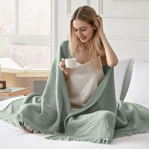 Return Policy Fast Delivery Trusted seller Muslin Throw Blanket 50x65 Inches Cozy Soft Lightweight Pre-Washed Cotton Blanket, All Season Breathable 4-Layer Gauze Blanket Throw for Sofa Couch Bed, Sage Green Product Description QUALITY MATERIAL: Made with selected premium cotton yarn, our muslin blanket is skin-friendly, soft and durable. Eco-friendly dyeing process provides extra comfort for sensitive skin. OEKO-TEX 100 Standards tested over 300+ toxic substance ensures every thread is harmless to protect your families. BREATHABLE & MOISTURE ABSORPTION: Our muslin blanket has exceptional moisture absorption and great breathability. The lightweight soft fabric provides enough comfort and warmth but without overheating. You will enjoy a great deep sleep with our excellent quality muslin blanket. MULTI-PURPOSE USE: Our muslin blanket is perfect as a sofa blanket or used on bed to add an extra beautiful natural wrinkle layer. Also great for traveling, camping, or picnics. Whenever you wrap up with our muslin blanket. You will always feel the cozy and comfortable. EASY CARE: Our muslin blanket was designed for long-lasting use. machine washable. Maintains softness and beautiful wrinkle pattern with each wash. We recommend use laundry mesh bag to well protect your muslin blanket. SATISFACTION GUARANTEE: Our goal is 100% satisfaction from our customers. Each product from was carefully selected. If you encounter any quality issues, please feel free to contact with our customer service, and we will arrange for a replacement or refund. Shipping Returns Payment Shipping Shipping is FREE to all addresses other than APO/PO boxes in the lower 48 states. All our stock ships from US-based warehouses. Shipped via USPS or UPS (depending on location and package weight) Unless stated otherwise, all orders will ship within 24-72 hours of your payment being processed. Check our feedback to see the great reviews of FAST shipping we offer. Returns Seller does not accept returns Payment We currently accept payment via eBay managed payments only. Once payment is cleared, we will dispatch your shipment within 1-3 business days. Please refer to the "Shipping" tab for more information regarding shipping speed to your destination.