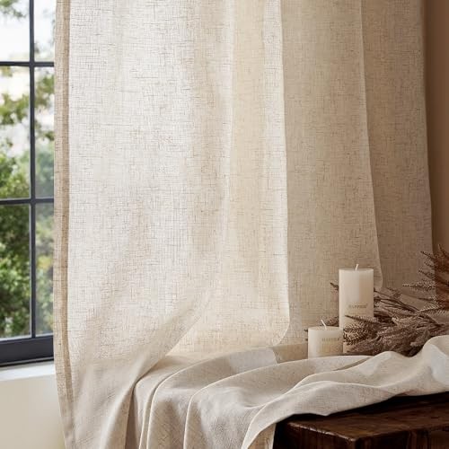 50x90 Semi-Sheer Linen Curtains Light Filtering Panel Set of 2
