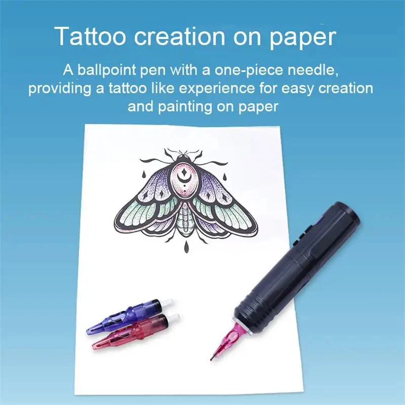 Specification: - Name: Ballpoint Tattoo Cartridge Needles - Color: Black Green Red Blue Pink for choose - Use for: Tattoo Drawing Practice Features: 1. Multo-color options: Ballpoint pen refills are available in black, blue, and red,green,pink,helping you to create more. 2. Let tattoo done on paper: Ballpoint pen tip cartridge needle.Bring the same experience feeling as a tattoo, making paper drawing become easy. 3. More cost saving: The refill is durable and requires no more consumables, reducing the cost of learning to tattoo by 80%. 4. Good choose: Aside from tattooing practice, this cartridge also lets you create artwork on a variety of mediums (wood, canvas, etc) for your portfolio. Package include: 5/10pcs*Ballpoint Tattoo Cartridge Needles