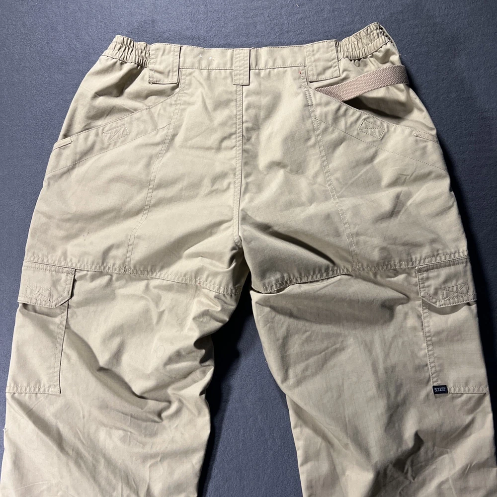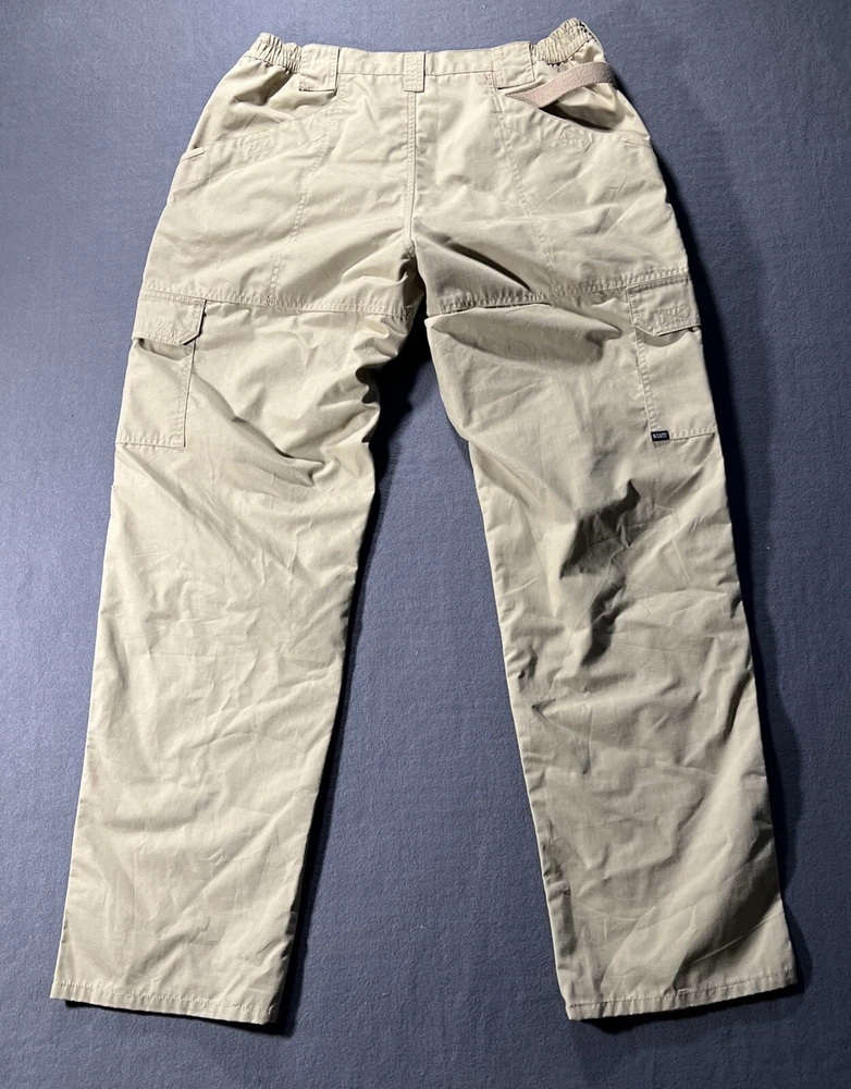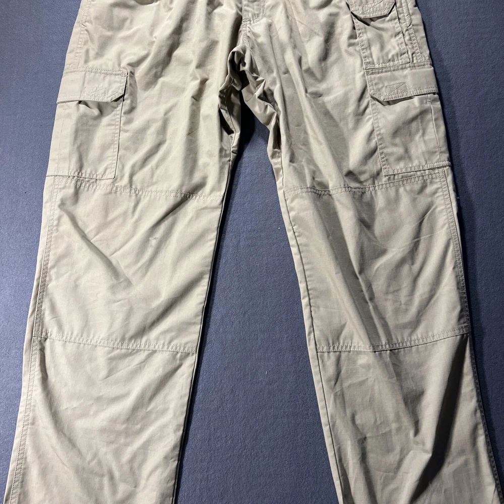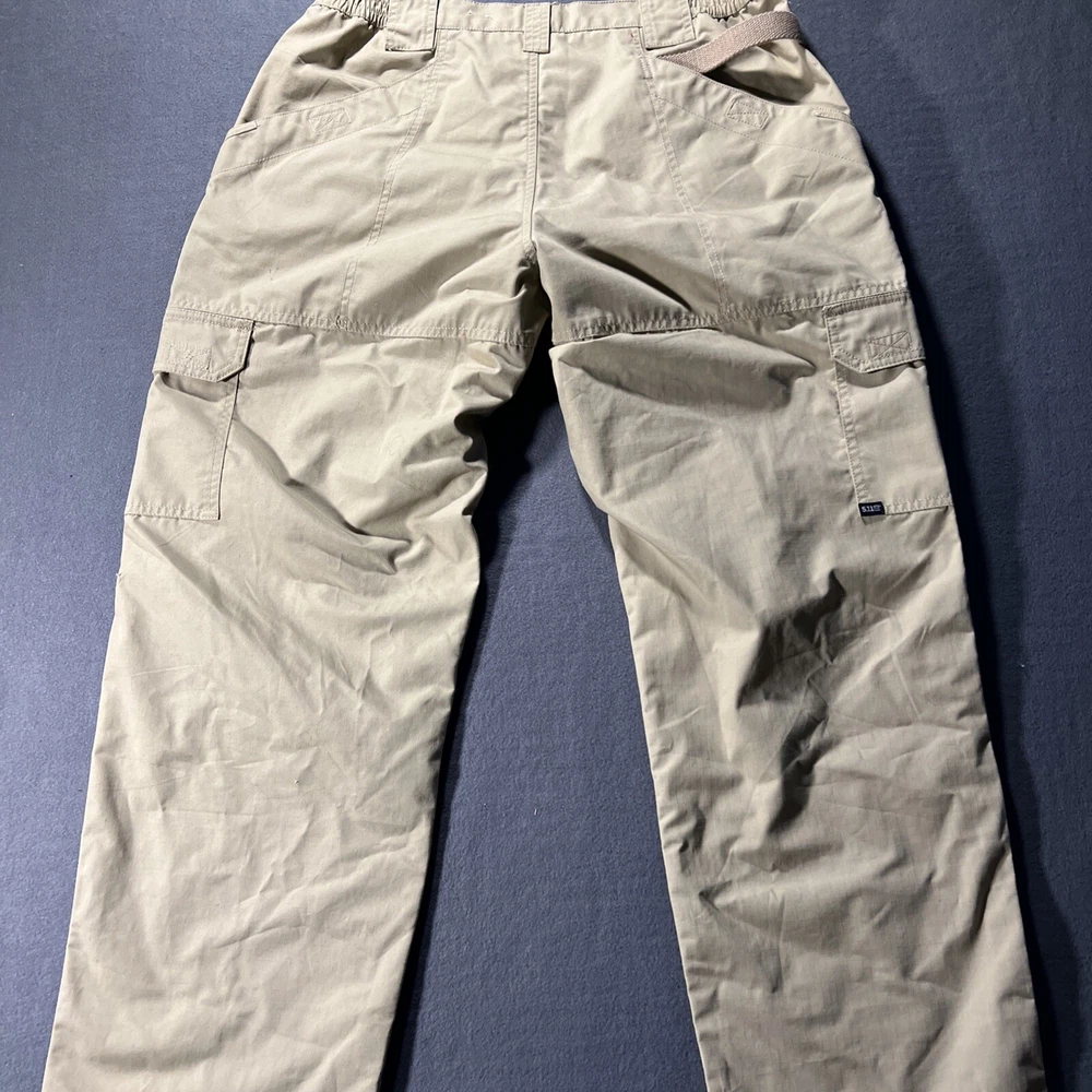*Please review all photos closely before purchasing due to pants having mild signs of use and wear from washing and being preowned to prevent return.* Elevate your outdoor style with these 5.11 Tactical Men's Cargo Pants in Tan. These pants are perfect for casual or workwear occasions with their versatile design. The mid-rise and straight leg style offer a comfortable fit while the elastic waist and lightweight material provide added comfort. These pants also come with convenient features such as pockets and zipper closure. The 5.11 Tactical Men's Cargo Pants are made of high-quality cotton material with a solid pattern that complements any outfit. These pants are machine washable and easy to care for. The pants are part of the 5.11 Tactical product line and are designed to withstand any season. With a 36-inch waist and 34-inch inseam, these pants are a perfect fit for most men. Security Shooting Ripstop Durable Tactical Original Work Security Guard Shooting Pants Shooting Competition Clothing Iconic Classic 511