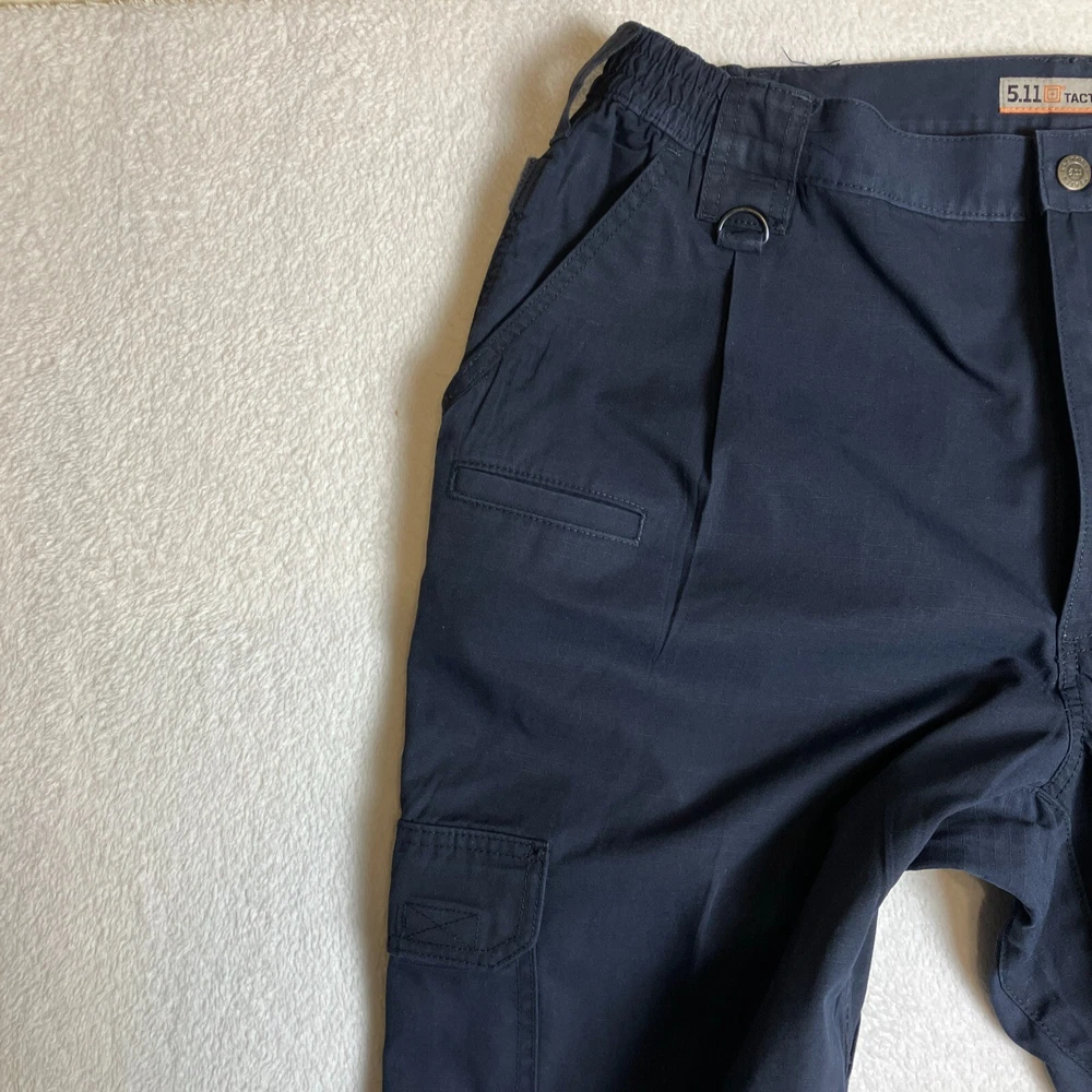5.11 Tactical Pants Mens 36x32 Cargo Straight Leg Navy Dark Wash Tag 40x34 A small faded stain is present. This item is in good pre-owned condition. The pants measure approximately 36x32. Please see pictures for details. Please feel free to contact us with questions. Thanks for your interest.