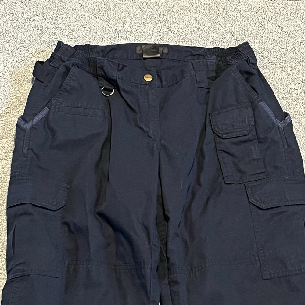 5.11 Tactical Pants Womens 14 Blue Workwear EMT Pockets Cargo Rip Stop Work See measurements for accurate fit Waist 15 inches across Inseam 30 inches Rise 9 inches All measurements are done flat lay