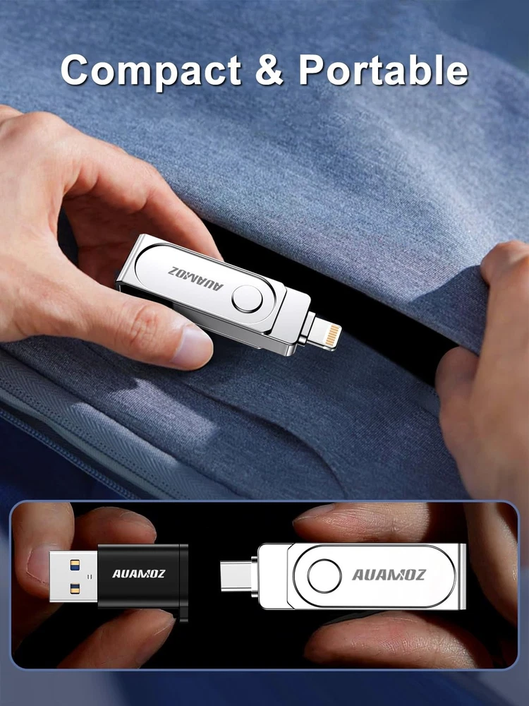 Do you want to make your Phone more convenient? Are you tired of your Phone running out of memory? Do you want to keep enough Phone memory during your trip? Plug and Play, No Application Required! Never lose important documents, videos, photos again thanks to large and reliable Phone flash drives. Free up iPhone and iPad Memory Space Immediately If your iPhone or iPad has almost used up all the memory space, this iPhone USB storage flash drive can help alleviate 512GB of storage space. Whether you like to shoot short videos or take selfies, our iPhone memory stick are perfect for you. One-Click Backup With the phone drive 512GB, easily backup and manage files without relying on iTunes. Use our mobile app to conveniently manage files, contacts, photos, and videos on your phone, and quickly backup to the mini flash drive, saving space on your device. Additionally, share files on the usb thumb drive and store captured videos, photos, or favorite movies directly on the usb memory stick for instant viewing. Plug and Play Share your photos, videos, songs and other files between iPhone picture stick easily. You don't have to pay extra for additional storage, just insert iPhone external storage and enjoy the extra space of your flash drive. High Transfer Speed Smart and upgraded chip with high efficiency and stability. read speed up to 30MB/s and write speed up to 20MB/s. The upgraded chip provides you with more efficient storage experience. How to transfer in iPhone iPad Requires iOS 13 and higher: Simply insert the flash drive into your iPhone iPad, then go to the "Files" app to find "Untitled" and move files to your iPad or iPhone as needed. How to transfer in Android Phones Android phones need to support OTG, and flash drives can be found in the “File Manager” of most Android devices. 【Plug and Play, No Application Required, Instantly Increases iPhone and iPad Memory Space】If you almost used up all space on your iPhone or iPad, this photo stick for iPhone helps to expand your memory at full storage with 512GB. And usb memory stick for photos is also a great partner for traveling photographers editing on iPad. Using this memory device for your iPhone, iPad or Computers, no worries with the iPhone storage anymore! 【Multi-Port USB Drive】The 3 IN 1 phone photo stick with USB-C Port/ USB-L Port/ USB Port (Independent interface), which is more convenient for data transfer between different devices, so as to get rid of the data cable and iTunes and iCloud, let you switch easily storage space. The Phone thumb drive is designed for use with a wide range of devices, Compatibility iPhone 16/15/14/13/12/11/8/7/6S/SE/XR/XS/XS Max/X Series/iPad Air Series/iPad Pro Series. Also support Android smartphones/Computers and other devices with USB-C Ports. (Tip: For iPhone system version requires iOS 13 or higher, For Android smartphones need to open OTG function) 【Watch Movies, Photos and Play Music Directly From Phone Flash Drive】Store your favorite videos, audios and music on your iPhone's Photo Stick, then seamlessly plug and play on your iPhone or iPad anytime, anywhere. No more need for Internet or WiFi. This iPhone storage device plays videos in many different formats.Pictures stored on the Phone storage device also support different formats. Great way to store all your pictures and videos on an phone external storage device. 【High Transfer Speed】Transfer photos, videos, and files in seconds with our USB stick. With a write speed of up to 15 MB/s and a read speed of up to 30 MB/s, our flash drive for iphone have higher performance than conventional usb storage flash drive. Save time and get more done with iphone photo storage stick. Enjoy the whole relaxing trip with never stuttering or buffering video play on the go. (Tip: No Third-Party Apps Required, Simply insert the flash drive into the iPhone iPad and go to "Files" app) 【How to transfer in iPhone iPad】Requires iOS 13 and higher: Simply insert the flash drive into your iPhone iPad, then go to the "Files" app to find "Untitled" and move files to your iPad or iPhone as needed. 【How to transfer in Android Phones】Android phones need to support OTG, and flash drives can be found in the “File Manager” of most Android devices. 【Kindly Note】1) For Flash Media Devices, 1 megabyte = 1 million bytes; 1 gigabyte = 1 billion bytes. Actual useable capacity may vary. Some of the listed capacity is used for formatting and other functions, and thus is not available for data storage. 2) Up to 30MB/s read speed, write speed is lower. Based on internal testing; performance may be lower depending on the host devices and user’s settings and configurations. 【Kindly Note】The phone case may prevent the proper connection between a phone and a usb flash drive, which could result in the phone being unable to recognize the usb flash drive. In this situation, please do not conclude that the usb flash drive cannot be used, remove the phone case and try again. 【Reliable After-Sales Service】Experience the convenience of high-quality USB memory stick and enjoy our premium customer service at the same time. For the phone flash drive, if you have any questions, we are willing to provide help.