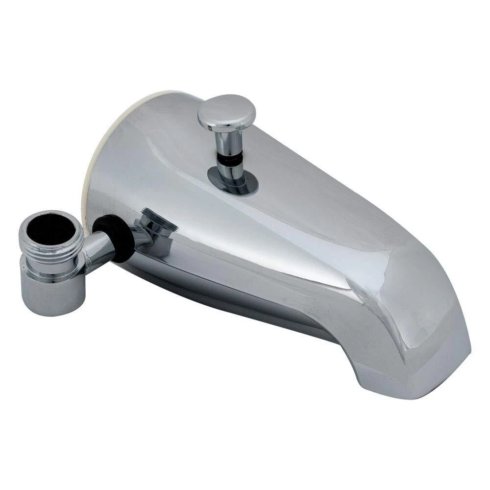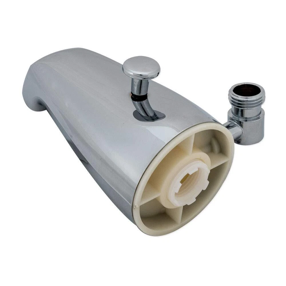 Product Description Simplify your plumbing and home improvement projects with the EZ-Flo Bath Tub Spout with Side Outlet. Constructed with durable zinc with a sleek chrome plated finish, this bathtub spout measures 5-1/4 inches in length to avoid flow disruption during use, and universal design with a 1/2 inch IPS side outlet for hand held shower connections. This bathtub spout includes a face bushing that measures 3/4 inch to 1/2 inch IPS. From the Manufacturer EZ-FLO's Diverter Spout with Side Outlet features a universal design. This spout is made of zinc construction for durability. The chrome finish completes the look of your bathtub decor. BATH TUB SPOUT WITH SIDE OUTLET: The diverter spout features a 5-1/4 inch extended spout length to avoid flow disruption during use DURABLE: Bathtub faucets are constructed with heavy duty zinc for long-lasting reliability UNIVERSAL: Bathtub spouts feature a universal design with a 1/2 inch IPS side outlet for handheld shower connections MEASUREMENT: Bath tub faucet attachment includes a face bushing that measures 3/4 inch to 1/2 inch Iron Pipe Size (IPS) MODERN LOOK: Bath tub spouts feature a sleek chrome finish which protects against corrosion, and also complements contemporary bathroom decors
