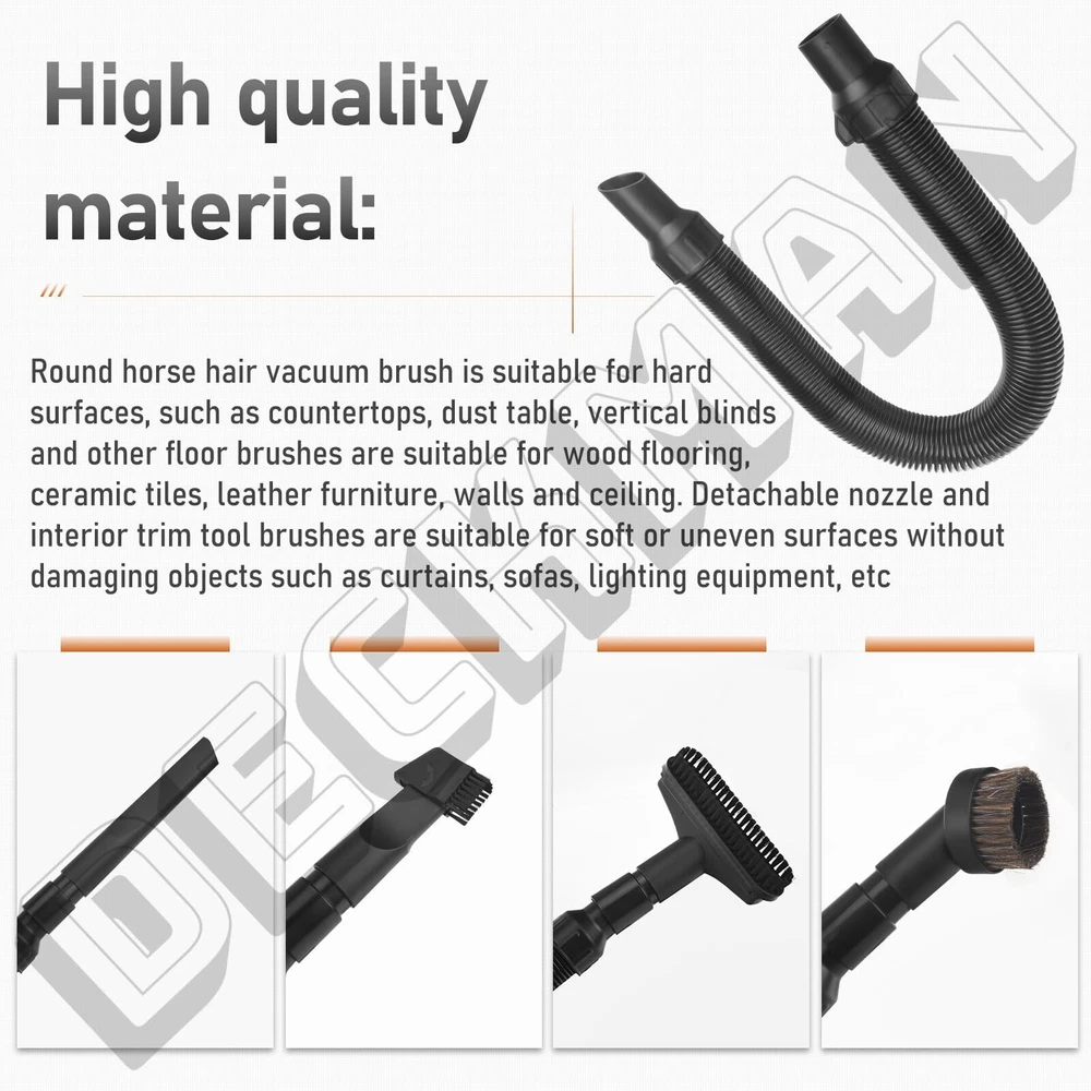 Part Number: 5140128-68 with: De-walt Vacuum Hose DCV580 DCV581H High quality material: Round horse hair vacuum brush is suitable for hard surfaces, such as countertops, dust table, vertical blinds and other floor brushes are suitable for wood flooring, ceramic tiles, leather furniture, walls and ceiling. Detachable nozzle and interior trim tool brushes are suitable for soft or uneven surfaces without damaging objects such as curtains, sofas, lighting equipment, etc Flexible vacuum accessories: flexible gap tool and head gap tool, suitable for dryer exhaust, sofa, car and other small corners of the dust and fine particles. These handy gadgets provide even more convenience for your cleaning work If you have any questions, you are welcome to us at any time, we will give you an answer within 24 hours!